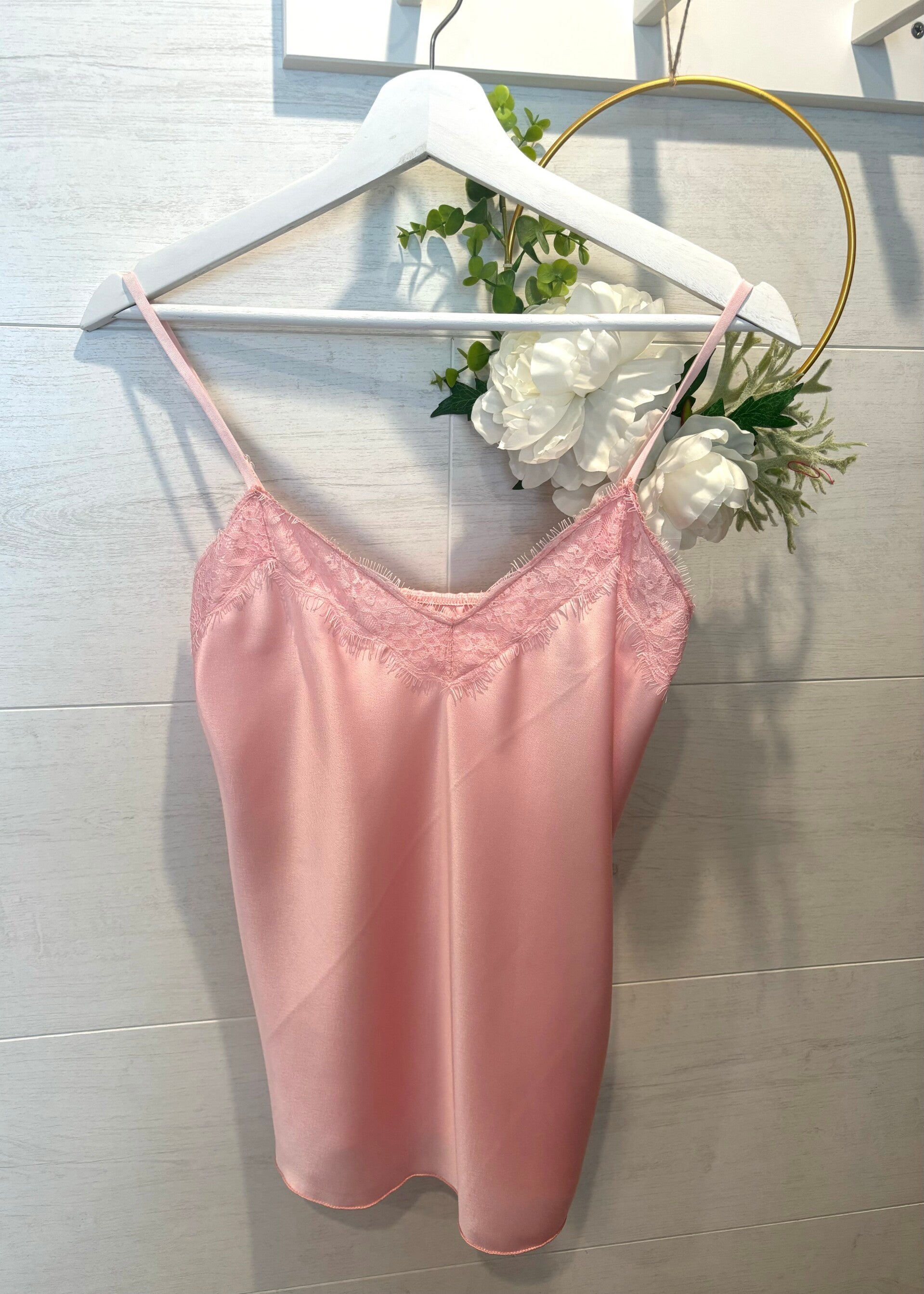 * débardeur satiné avec dentelle à l'encolure