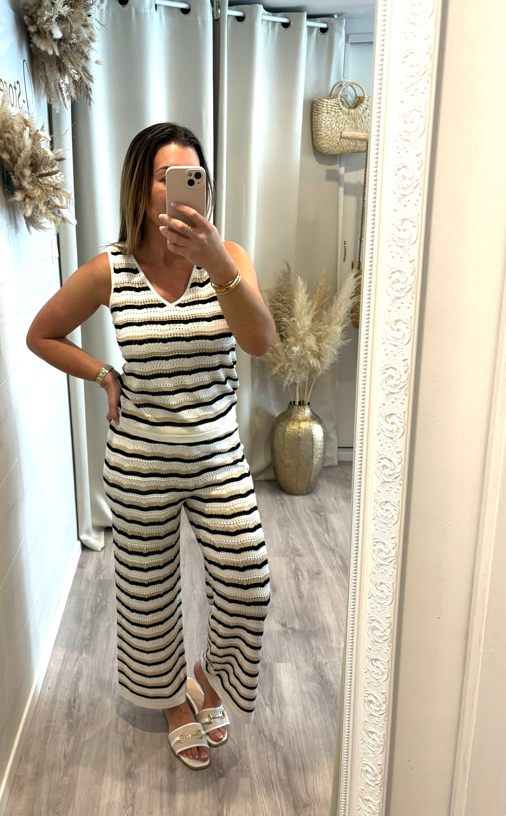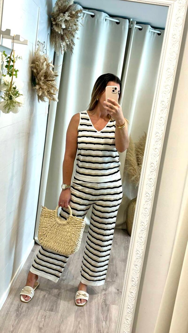 * ensemble en crochet, noir- crème et doré, ultra tendance pour l'été !