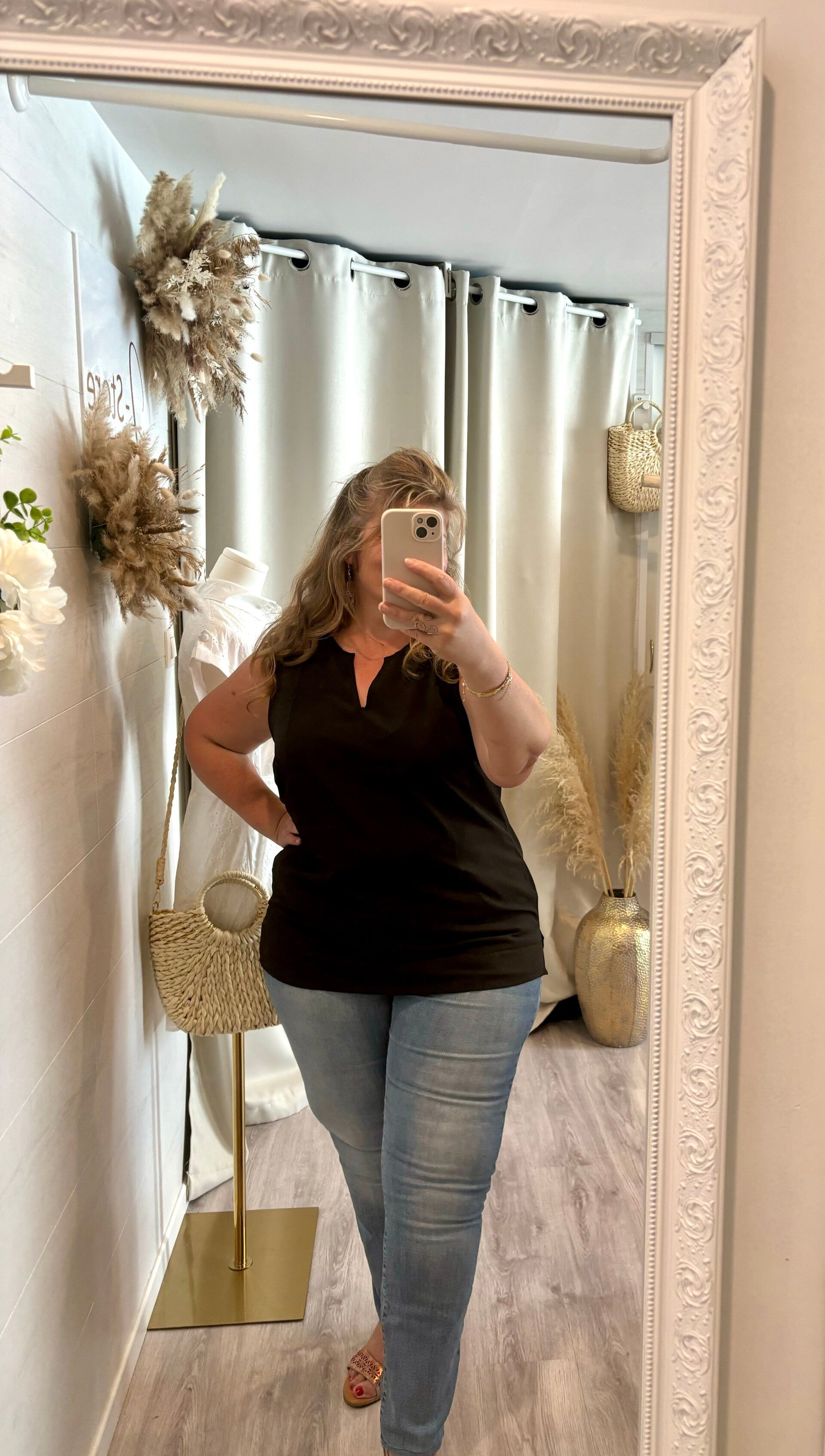Notre jolie mannequin Isa, mesure 1,68 m et porte la taille 4 pour son 48-50 habituel.