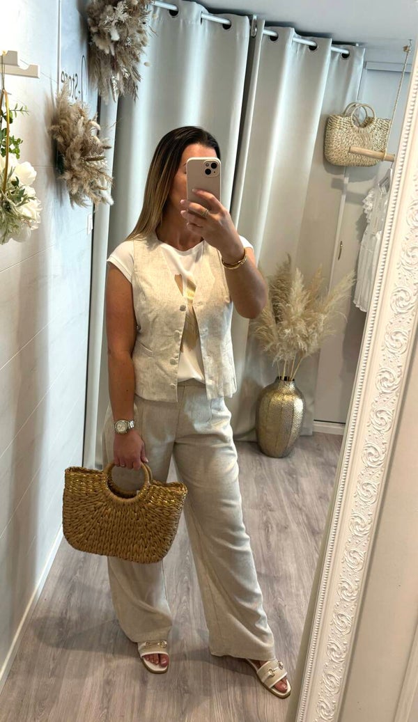 * pantalon chic et stylé, fluide, à attacher avec bouton.