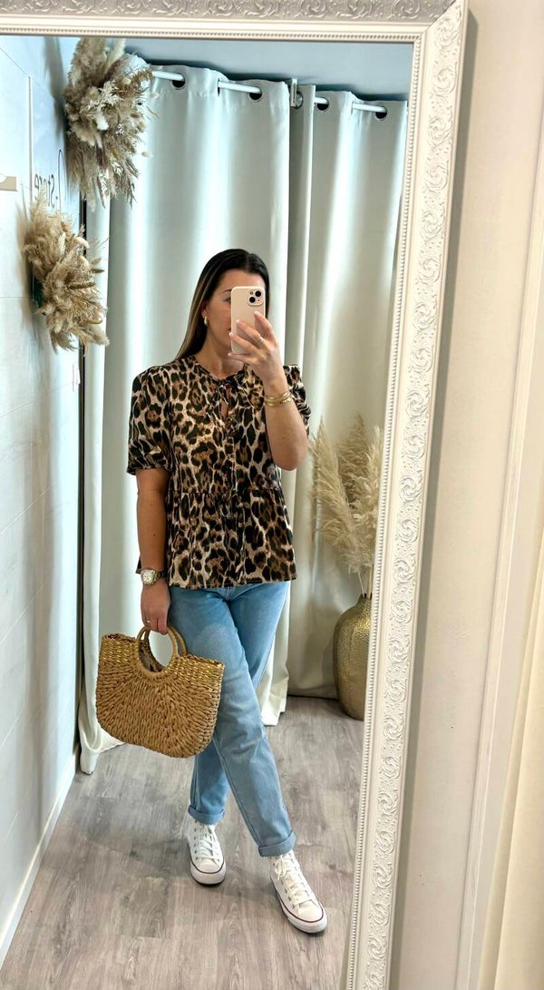 * blouse chic à imprimés léopard TU (convient de la taille 36 au 42)
