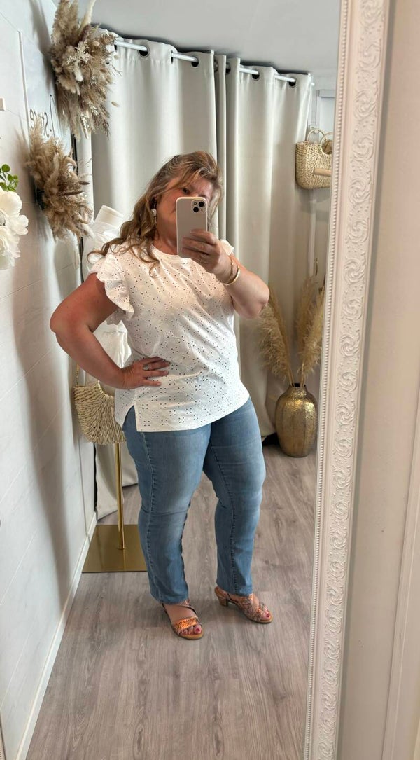 * blouse élégante en imitation broderie anglaise, avec manches volantes sur les épaules