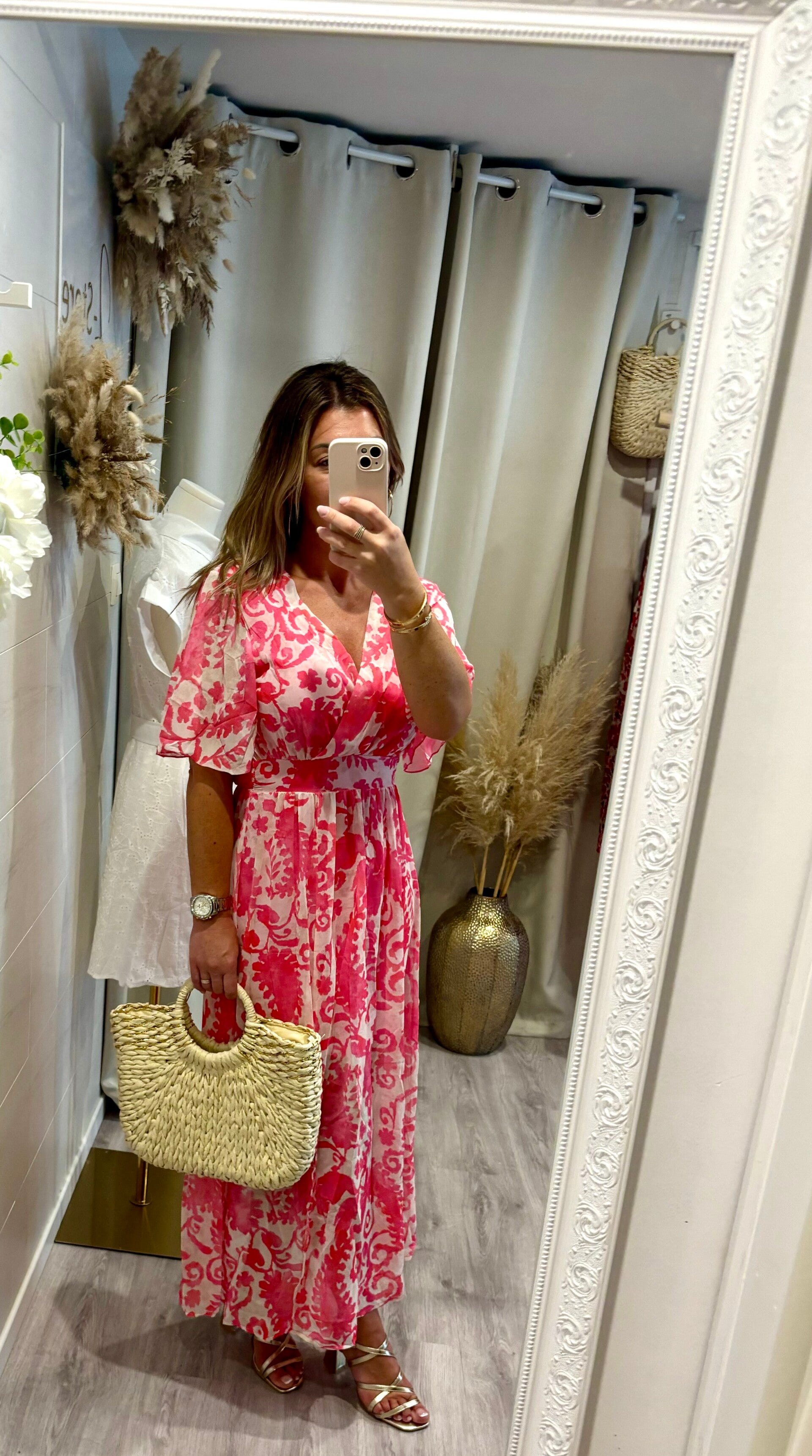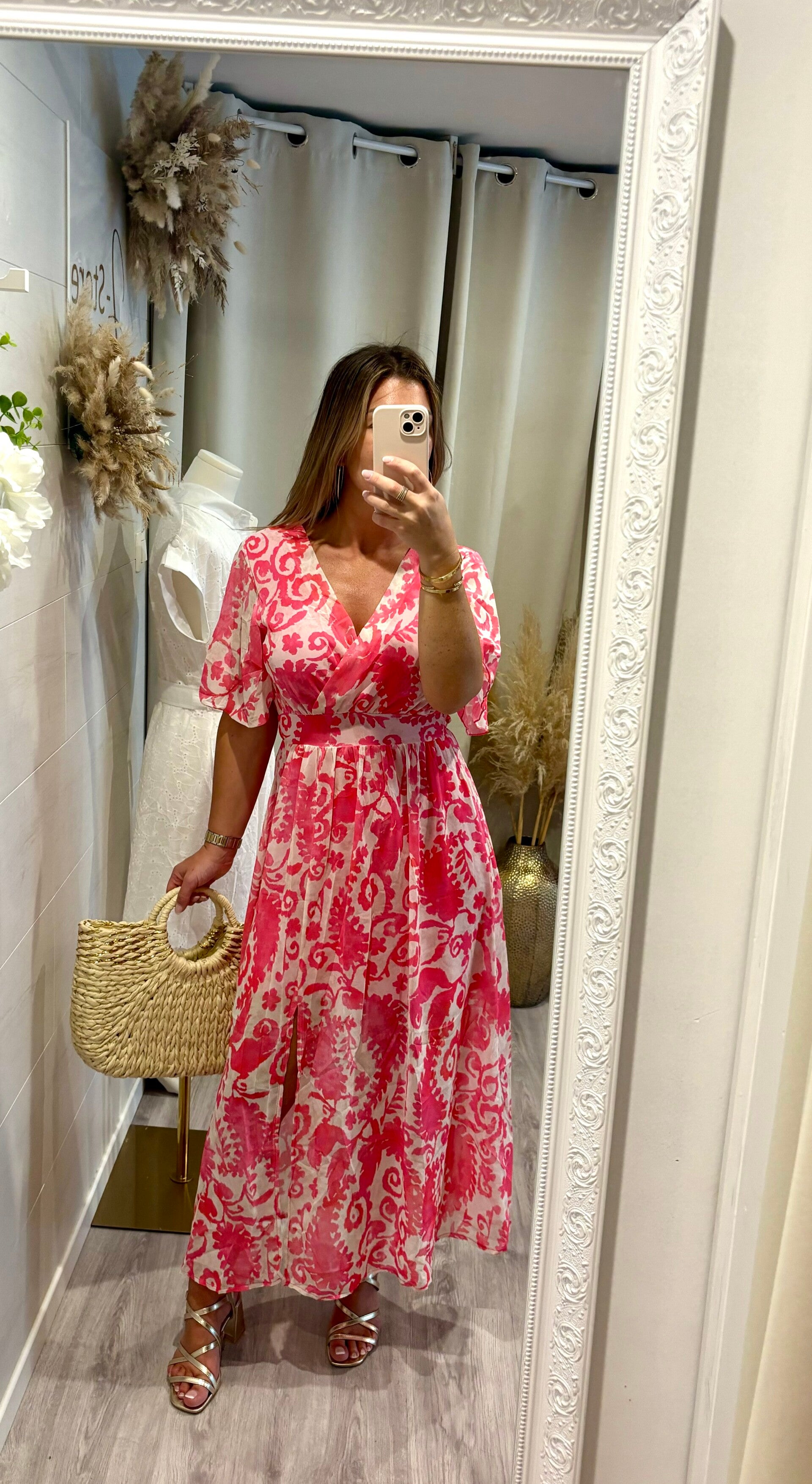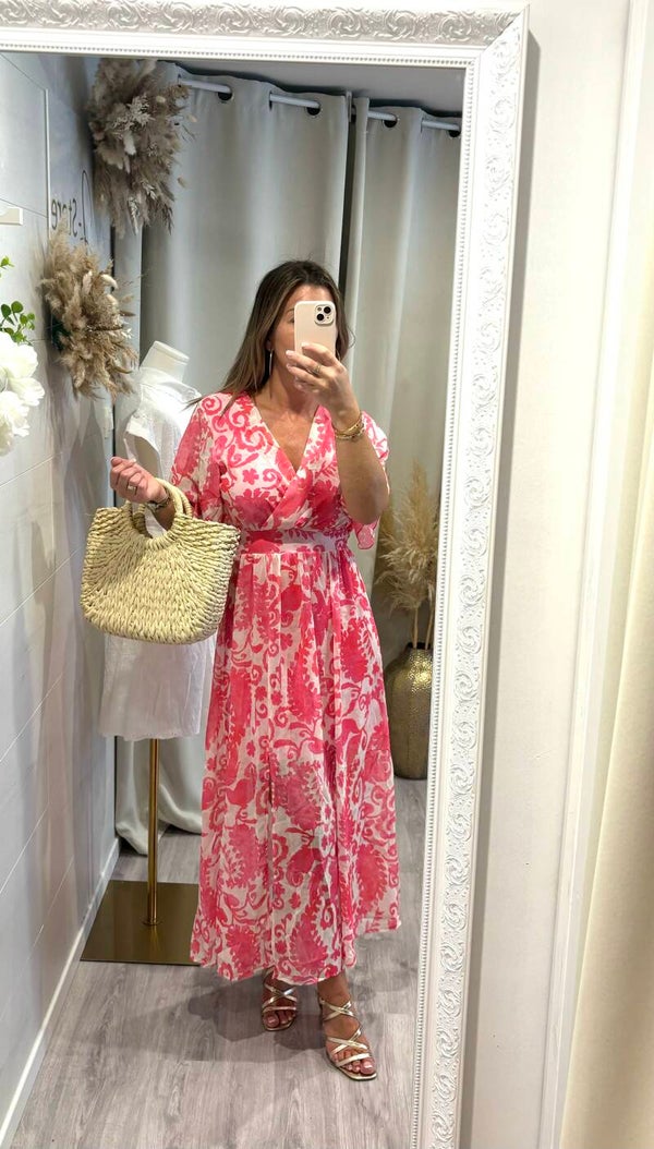 * longue robe à encolure effet cache- coeur à l'avant et col en V dans le dos