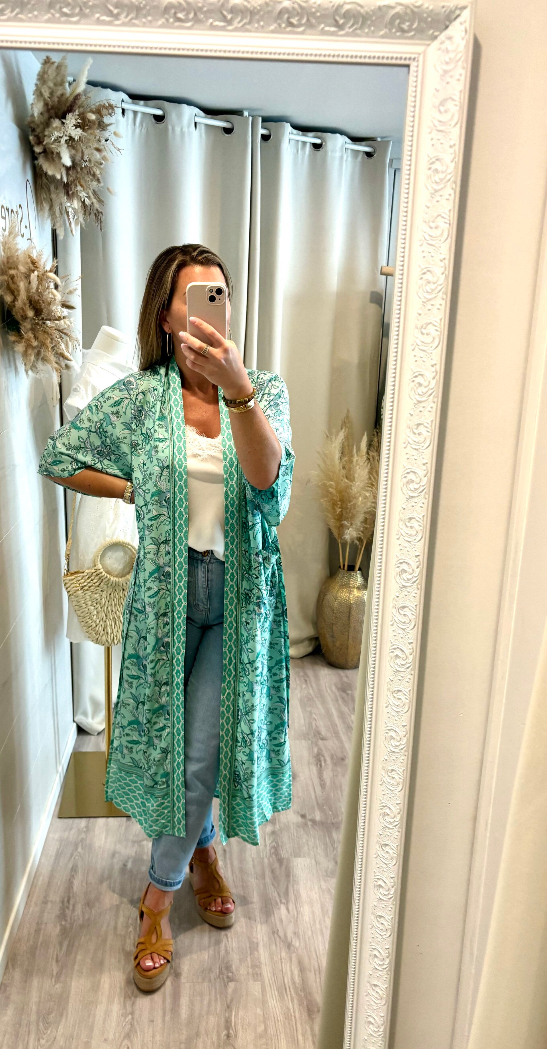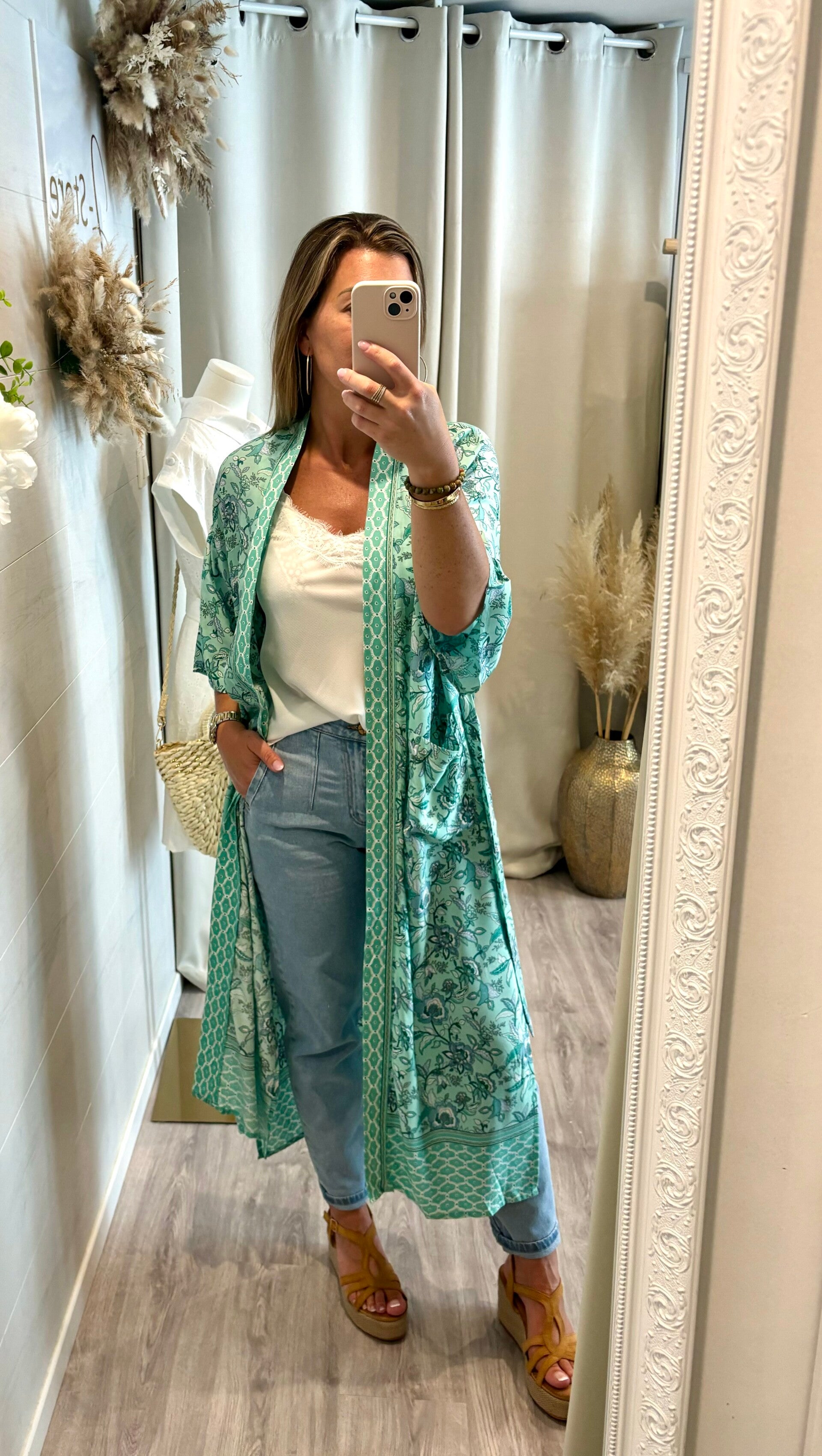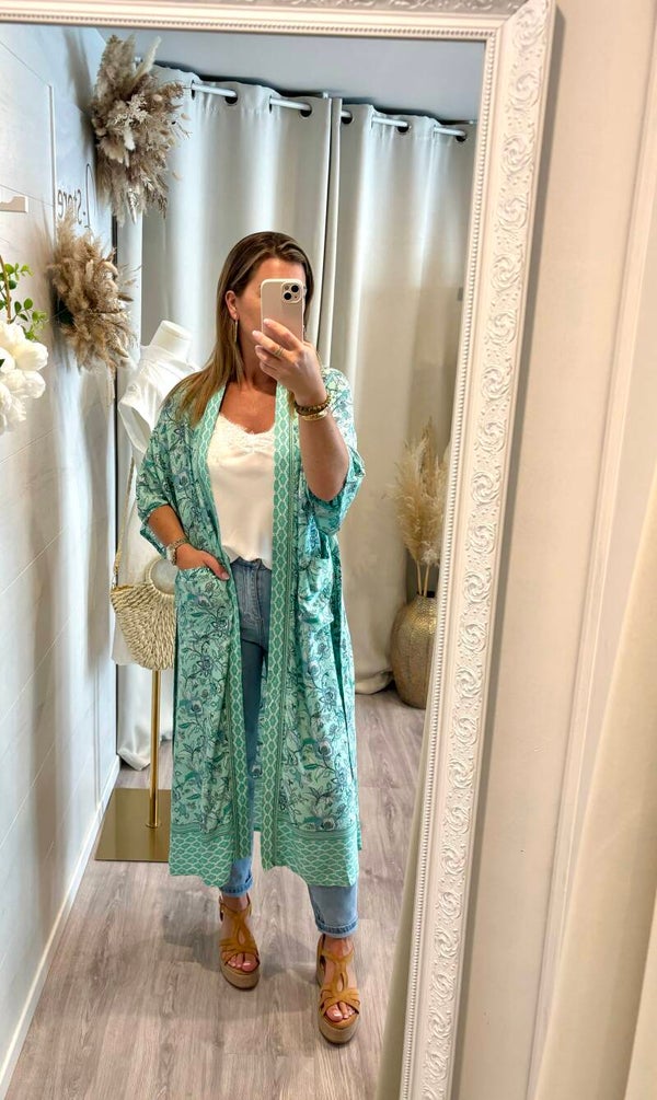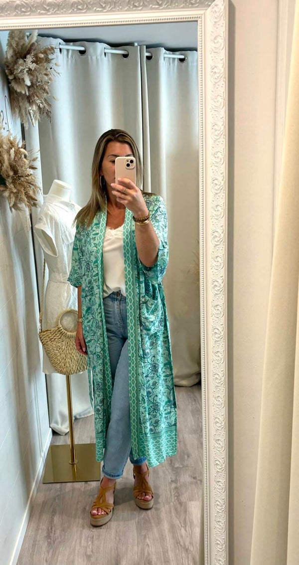 - long kimono à imprimés fleural.