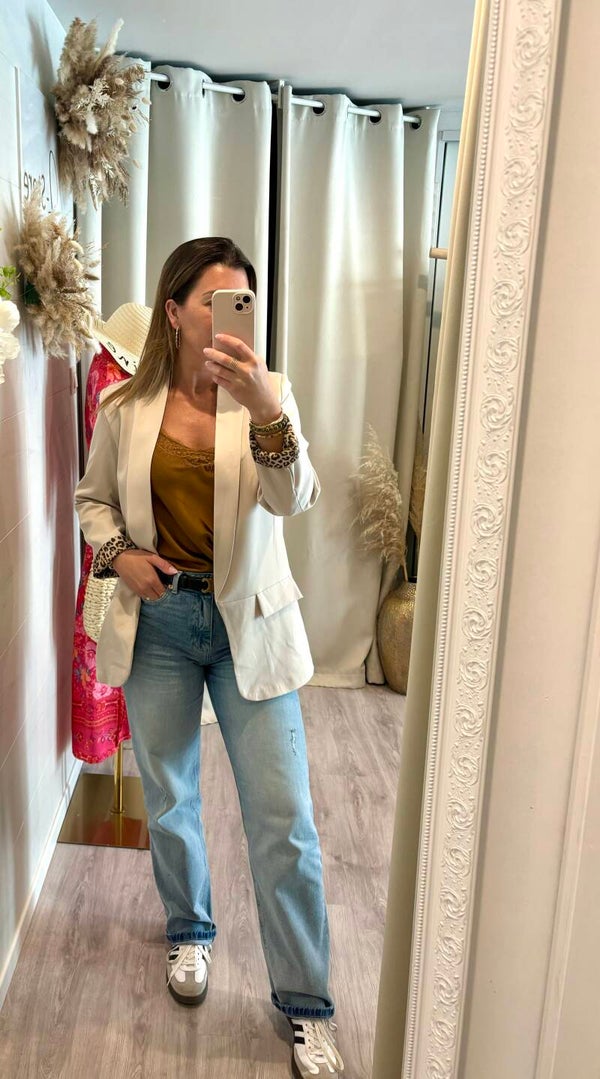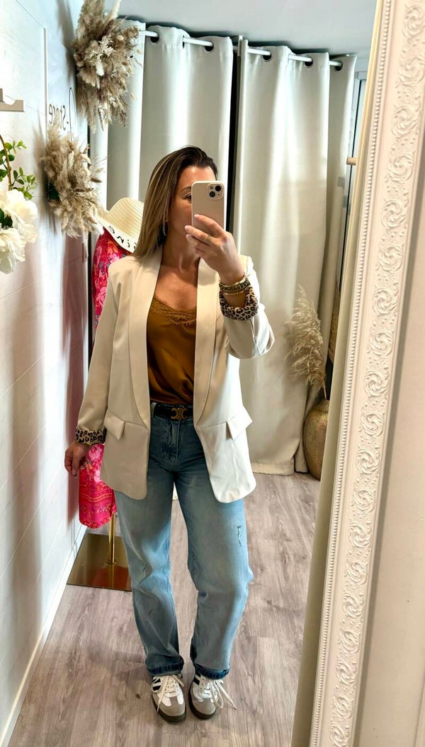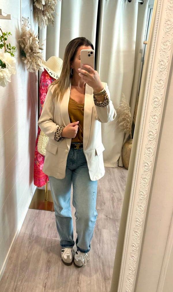 Veste classique & tendance avec son imprimé léopard aux manches .