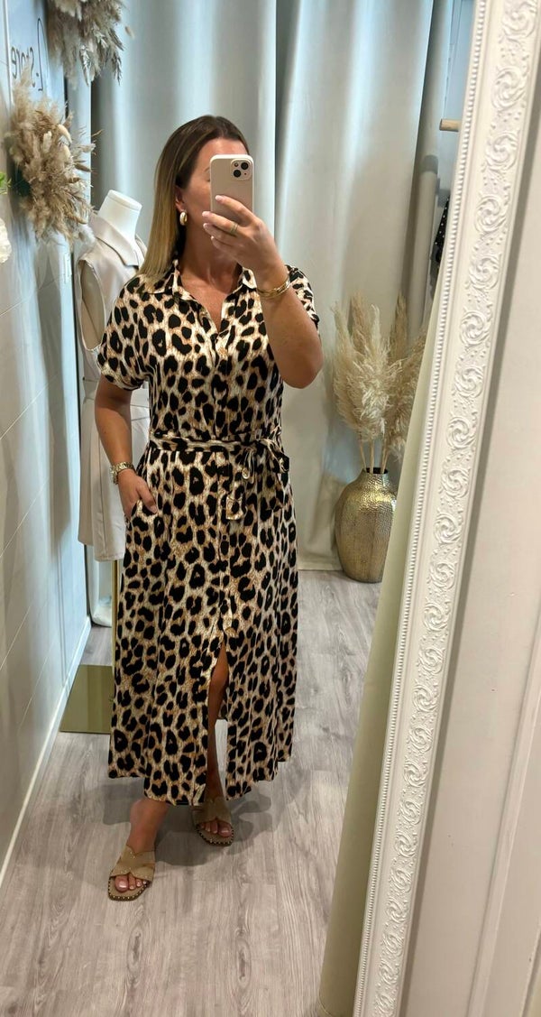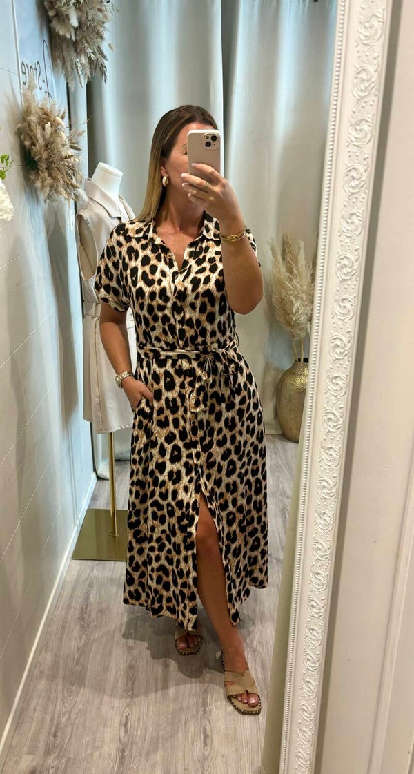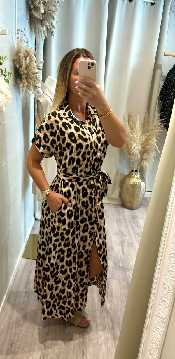 * longue robe à boutonner sur le devant, col chemise.