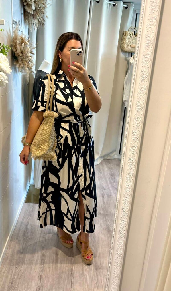 * robe chemise à nouer au niveau de la taille.