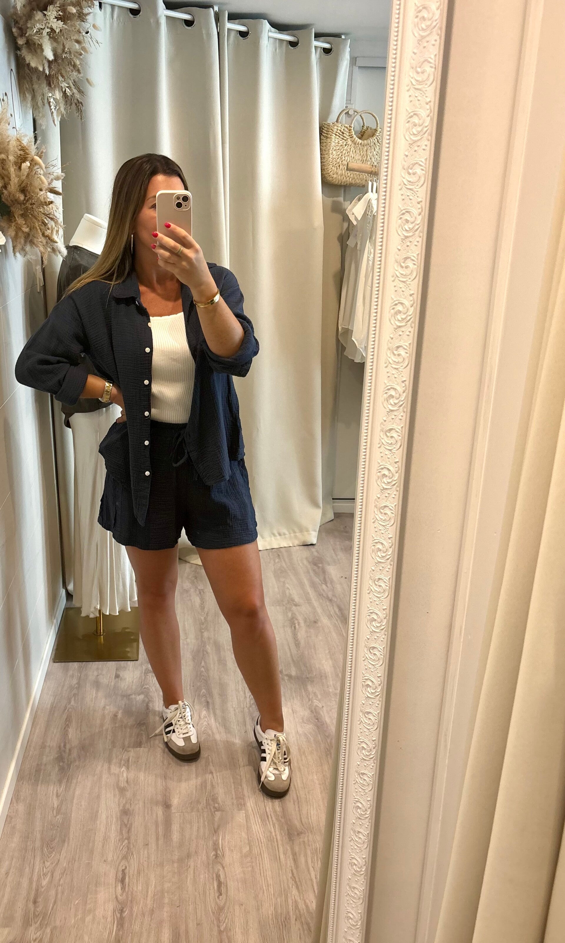 Pour une rentrée tout en légèreté, cet ensemble marine, en gaz de coton, sera idéal !