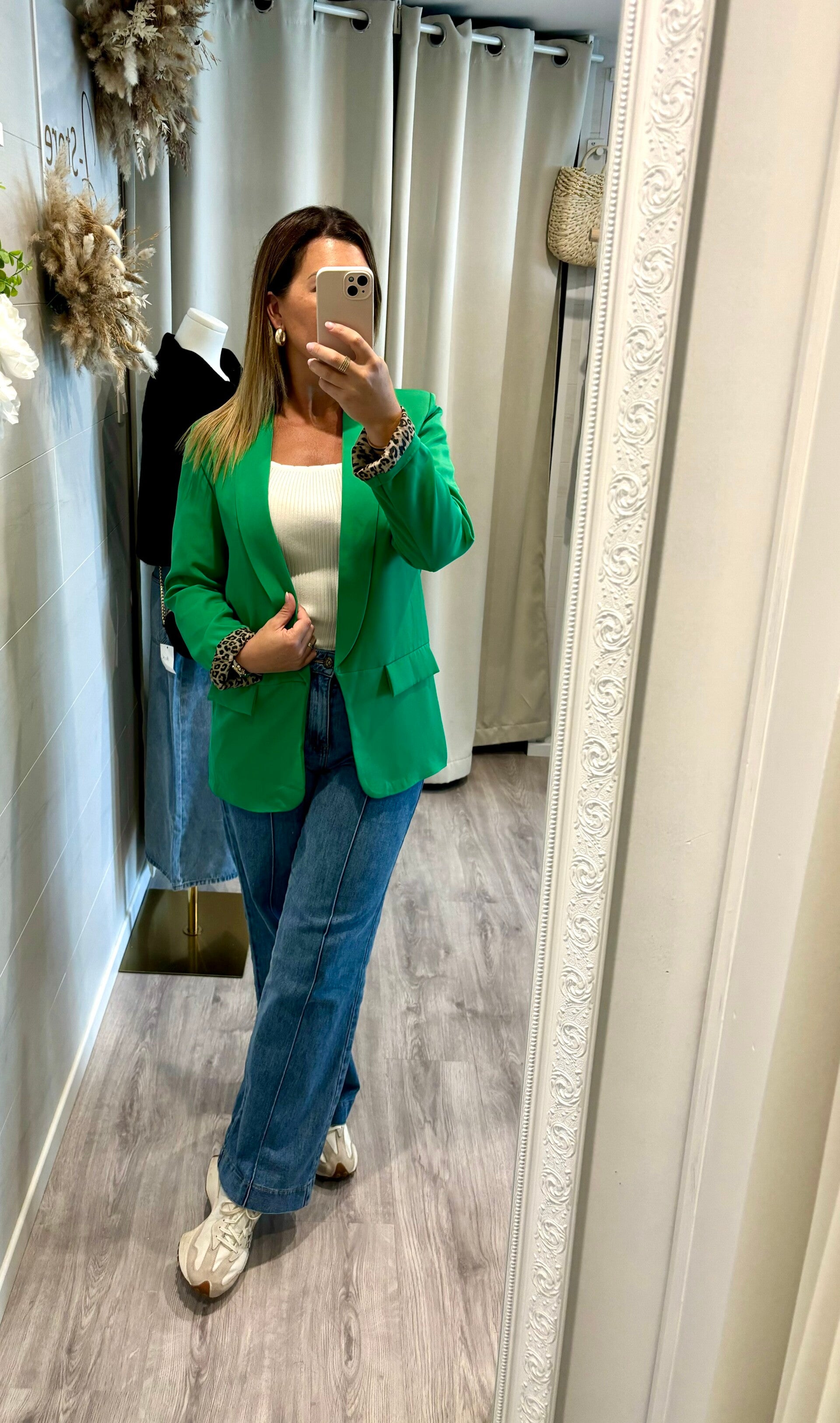On craque complètement pour cette veste verte à la doublure en imprimé léopard. Pour un look élégant, pep's & casual , cette veste sera parfaite !