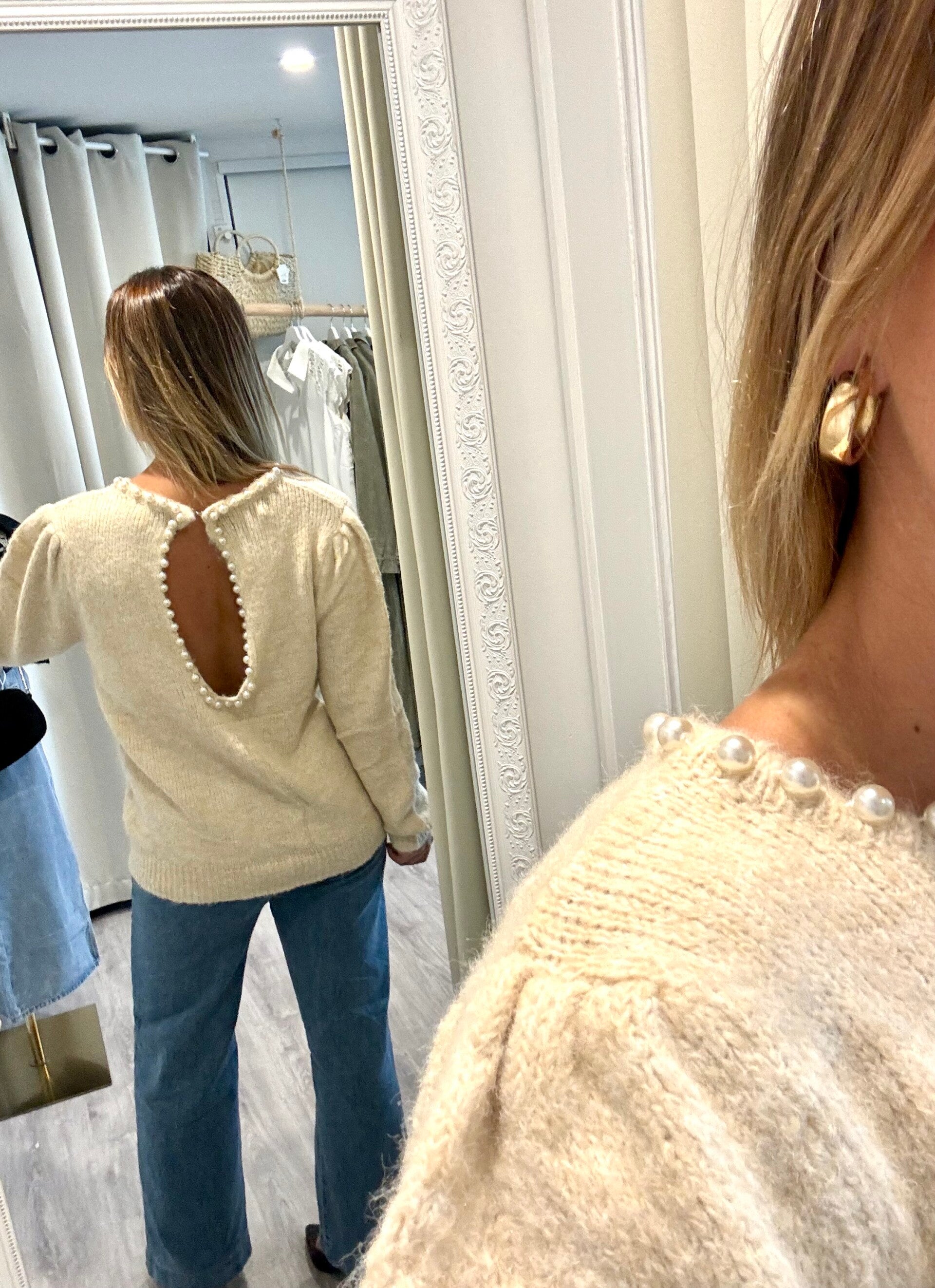 - décolleté dans le dos orné de perles