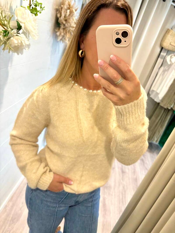 - perles tout le long du cou et dans le décolleté du dos