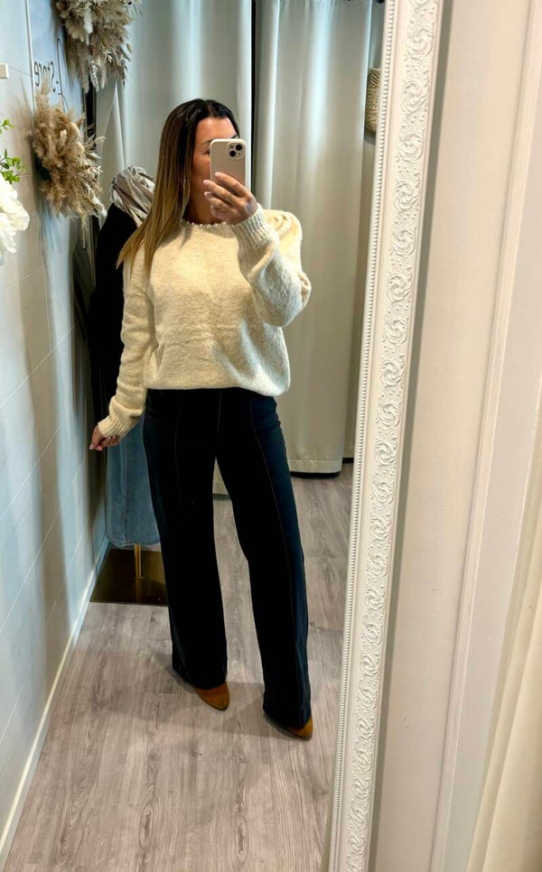 Jeans à la coupe évasée dans le bas et collante au niveau des cuisses