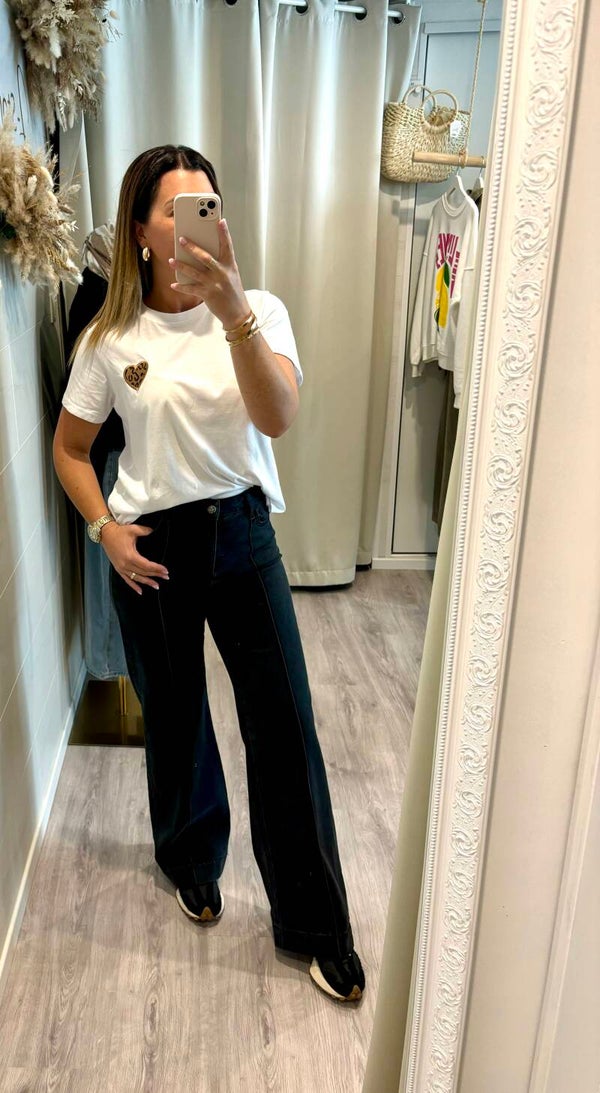 Tee- shirt classique avec son détail en coeur, en imprimé léopard.