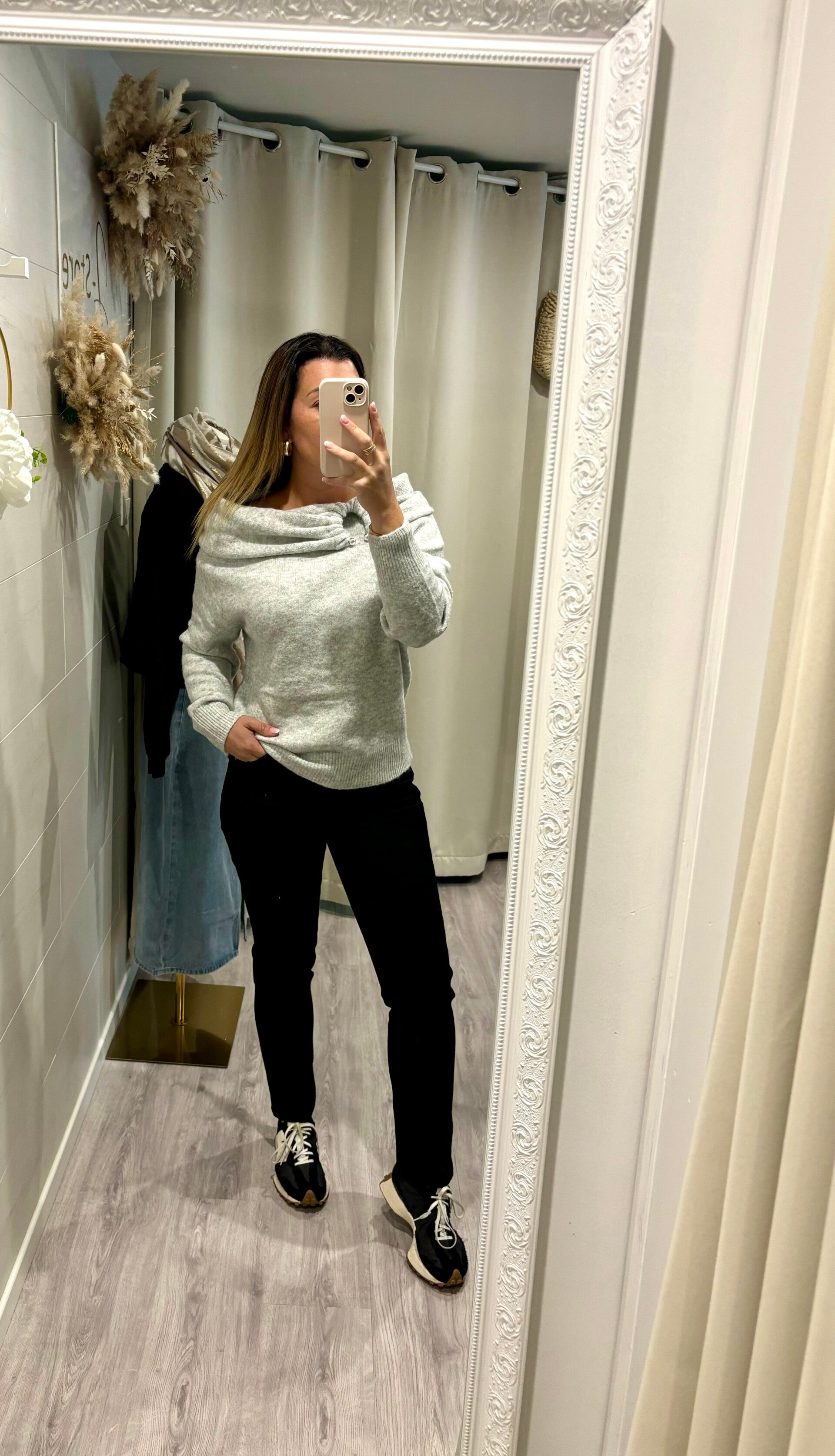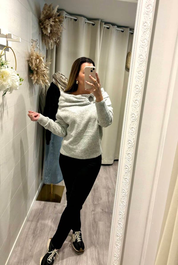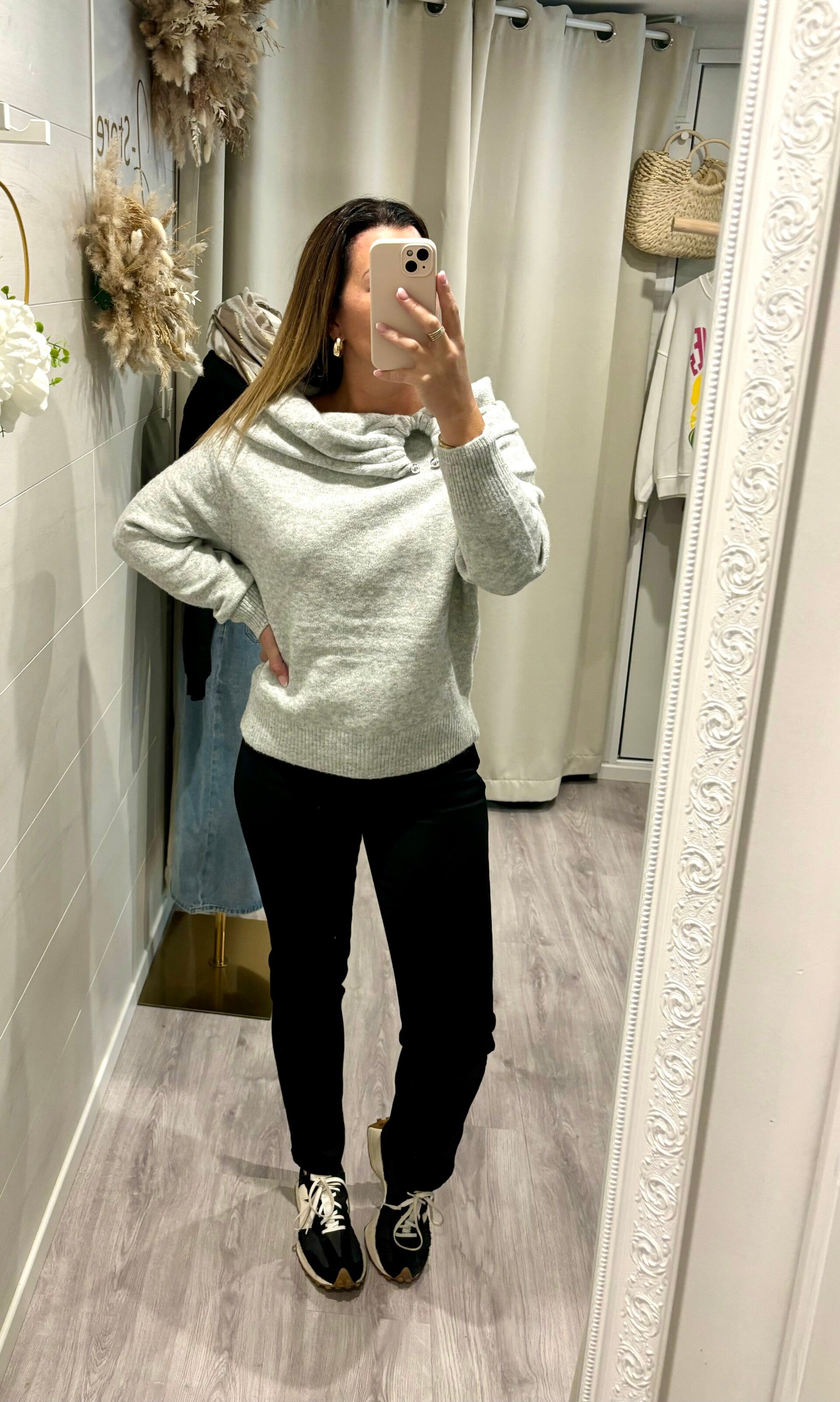 Pull bien chaud à la coupe élégante avec son col Bardot.