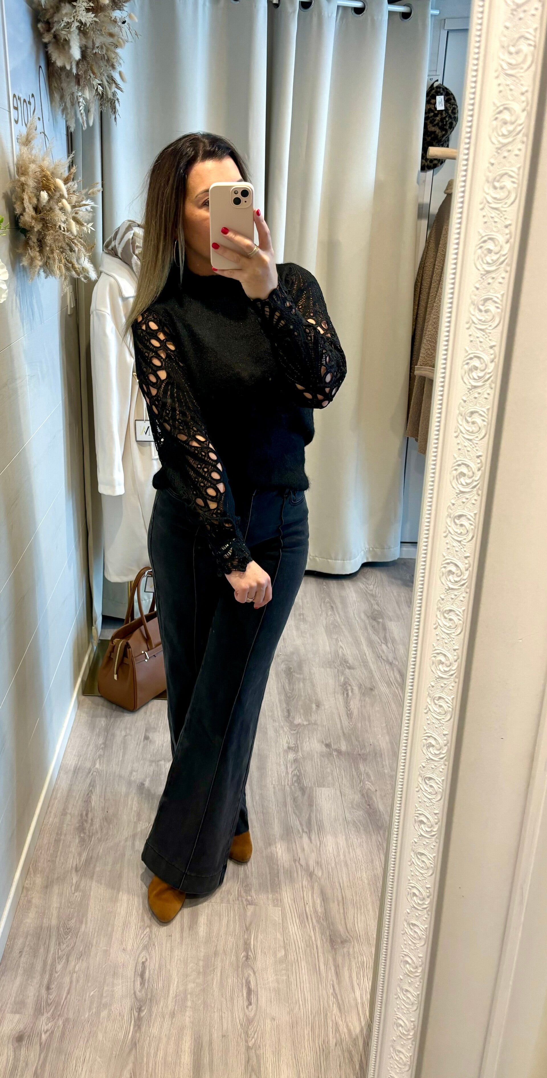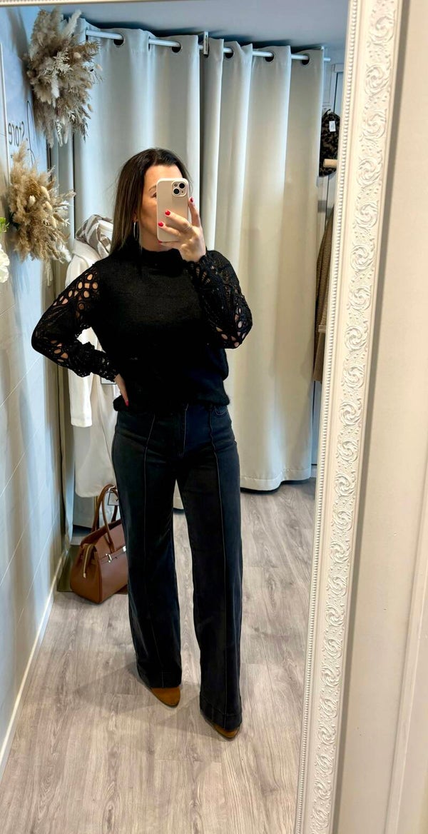Pull noir avec sa dentelle qui donnera un côté chic & glamour à vos tenues .