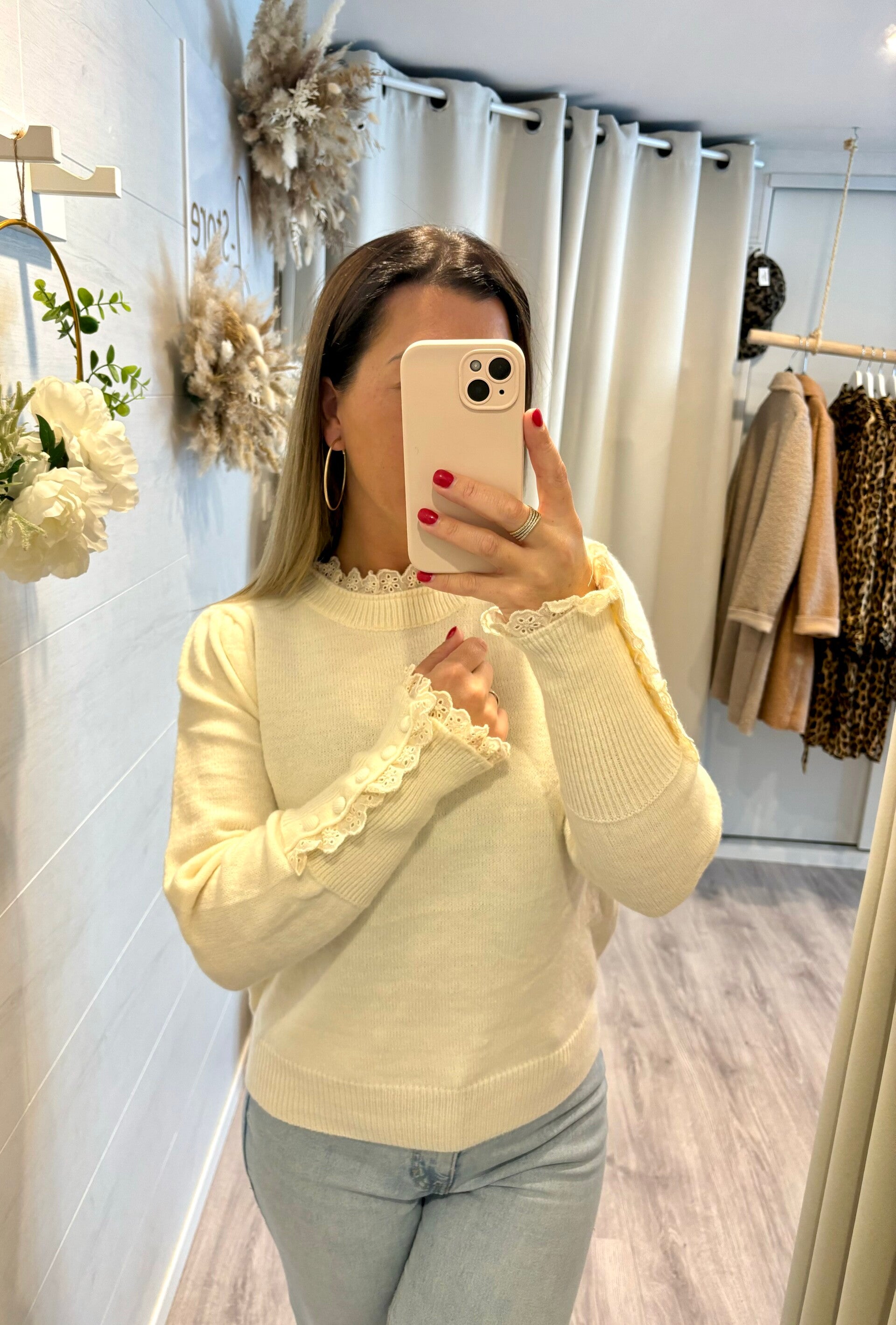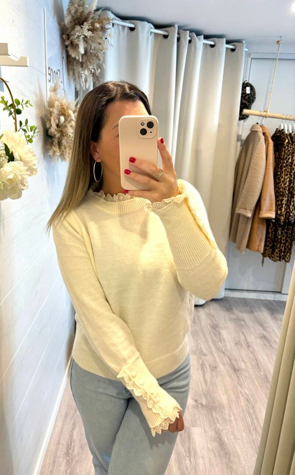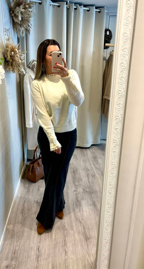 On craque pour les détails en dentelle de ce pull.