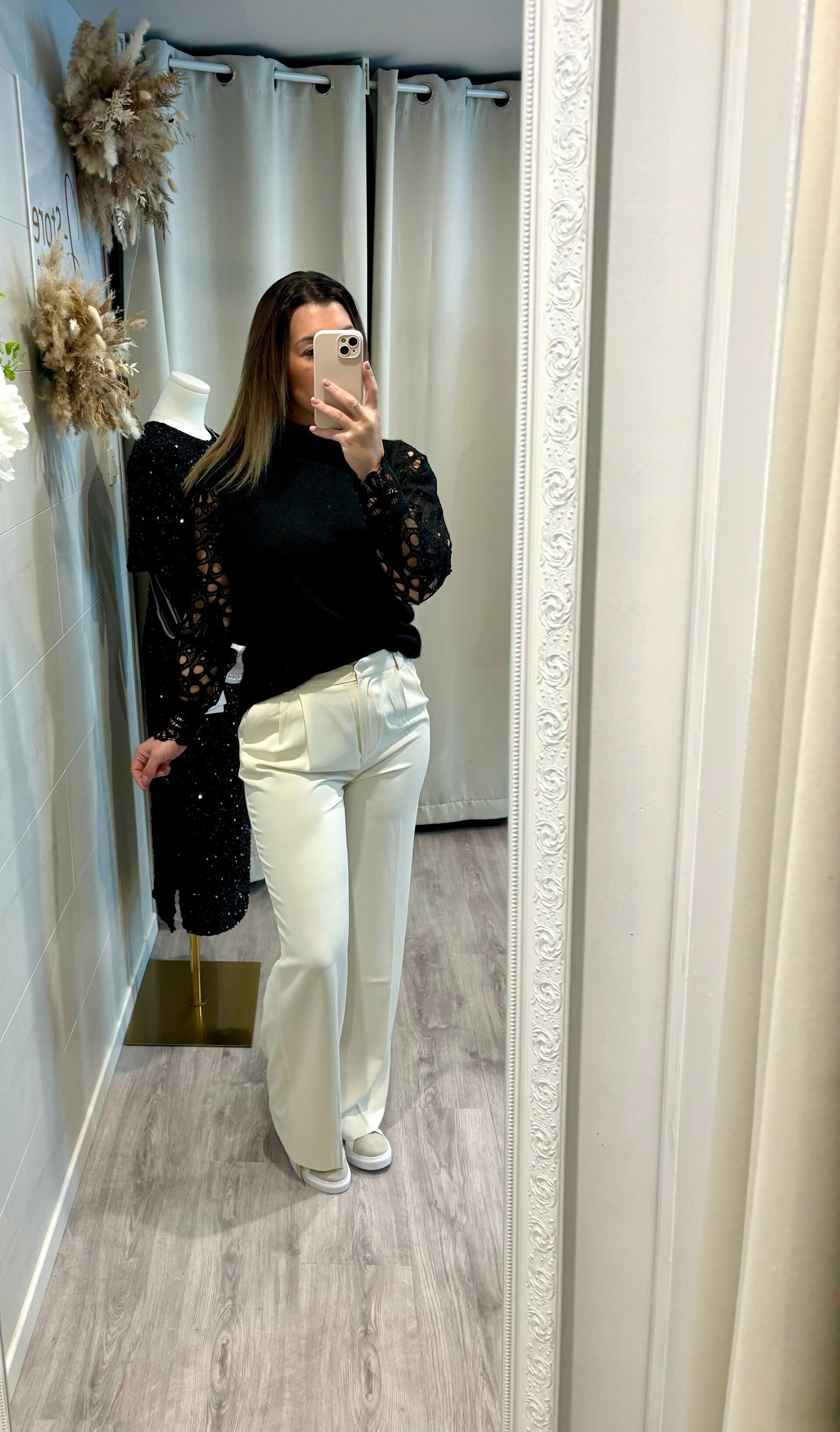 Pantalon écru chic & élégant avec sa coupe droite et fluide .