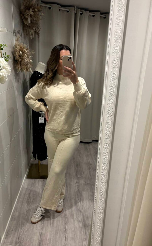 On craque complètement pour cet ensemble ( pantalon & pull ) ultra cocooning et chic , pour rester confortable durant cette période hivernale .