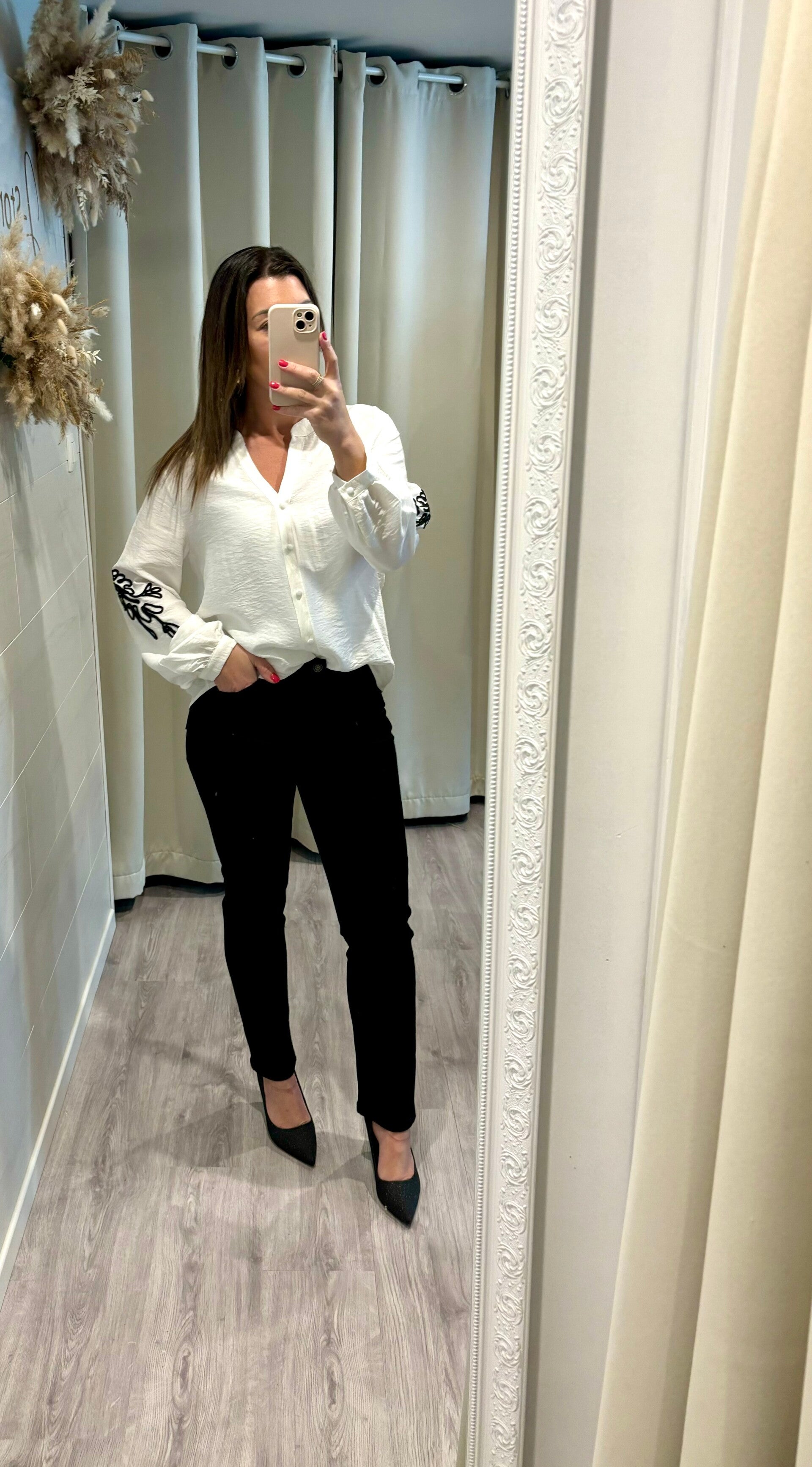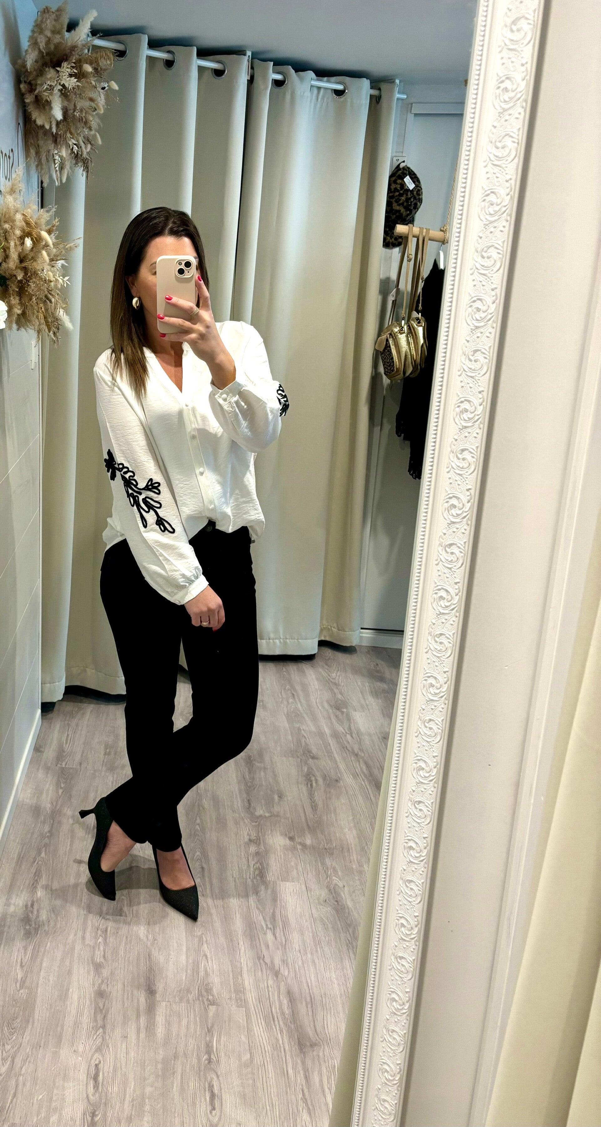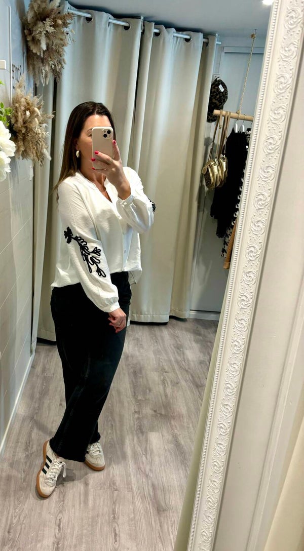 Voici une chemise classique et originale avec son imprimé fleuri noir aux manches .