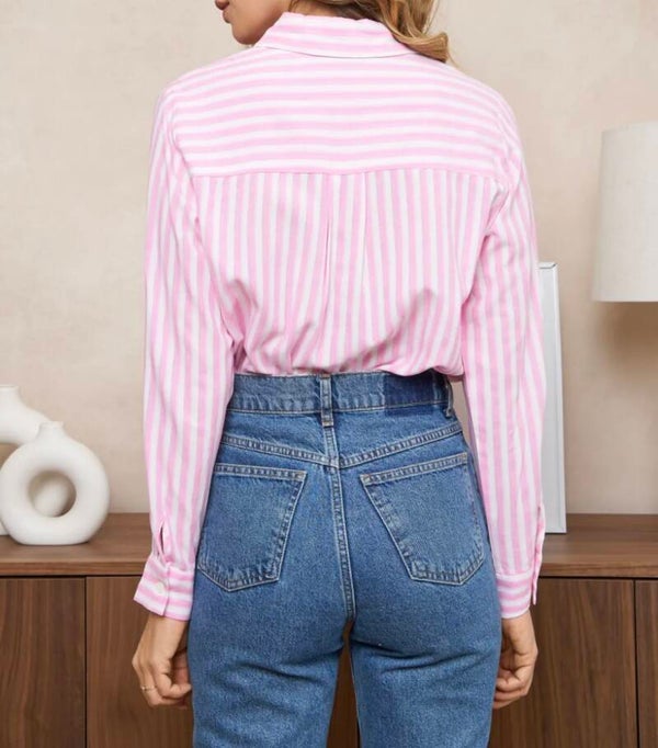 Chemise classique & pep's avec ses rayures roses & blanches.