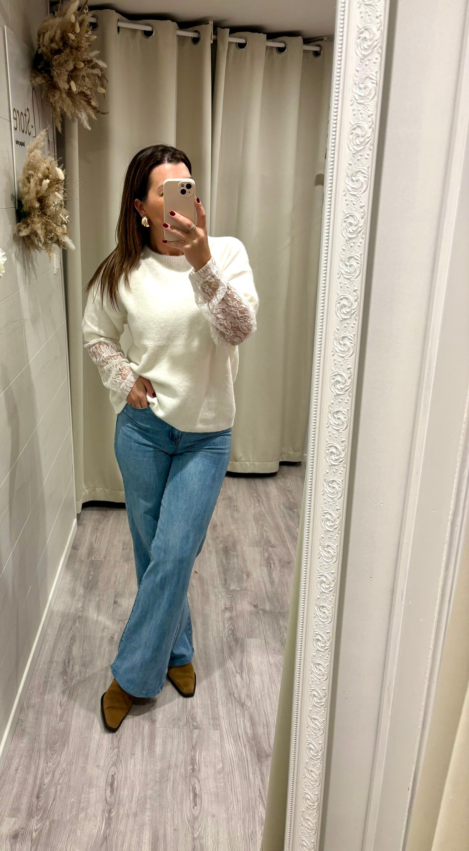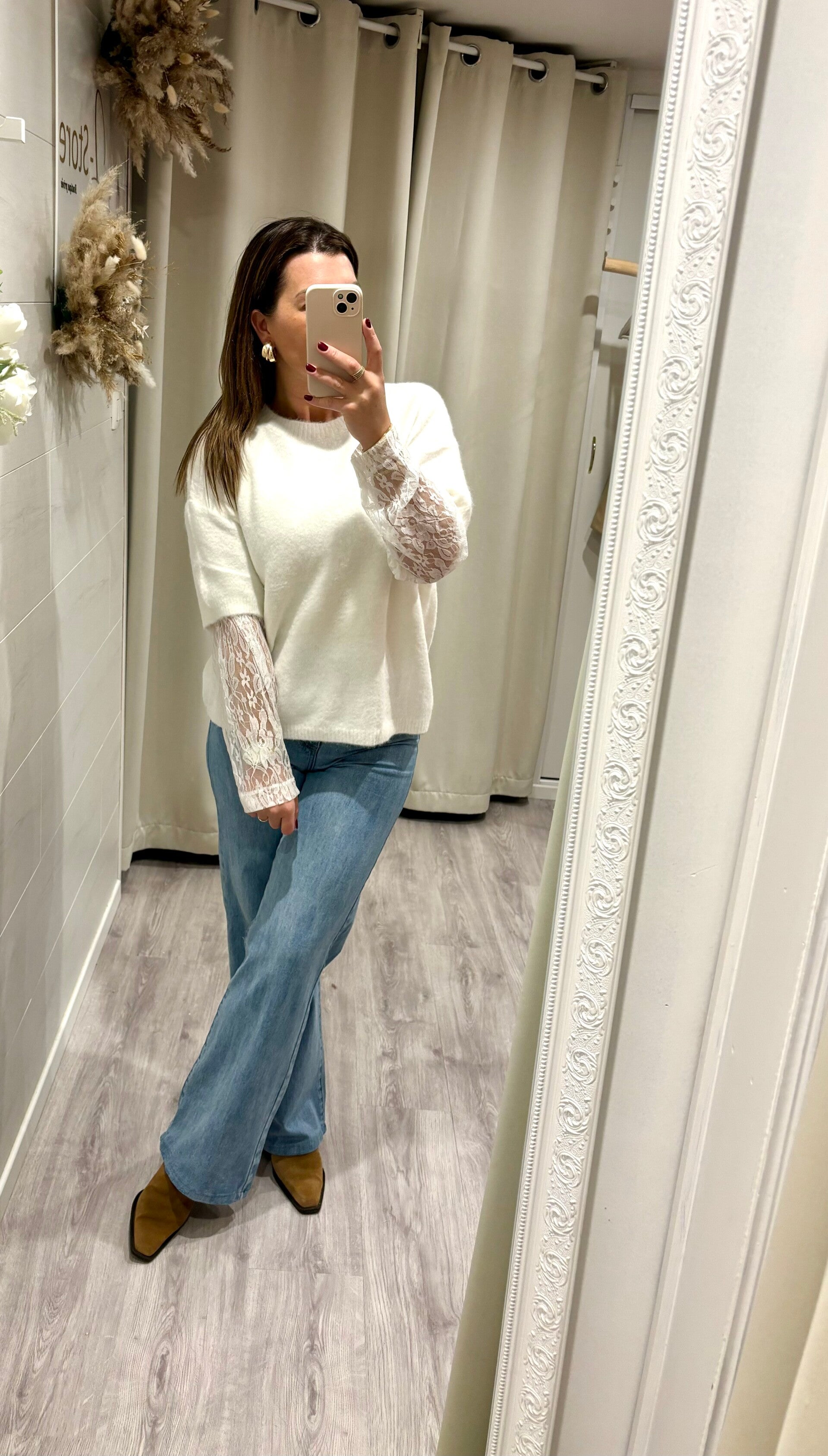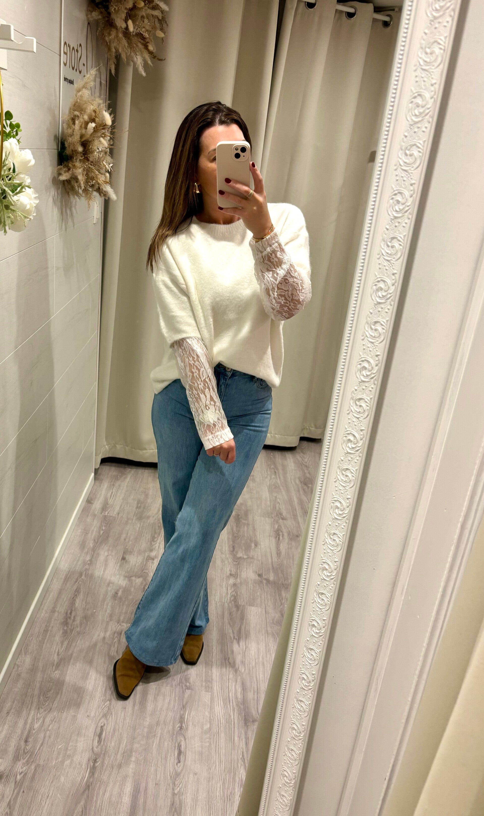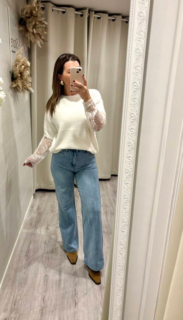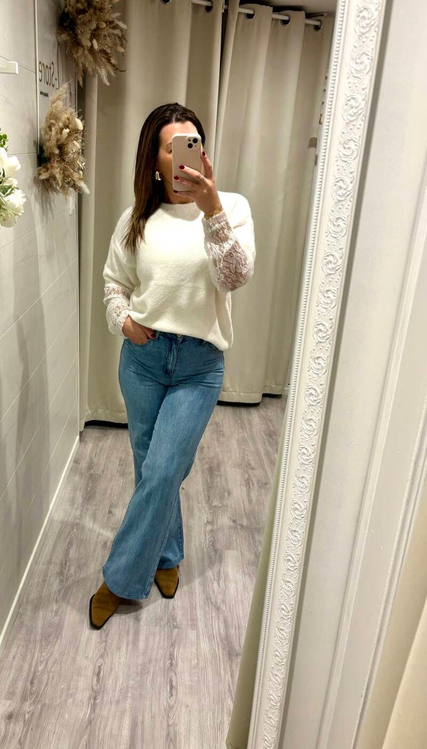 Pull tout doux et chic avec ses manches en dentelle. Effet double pull !