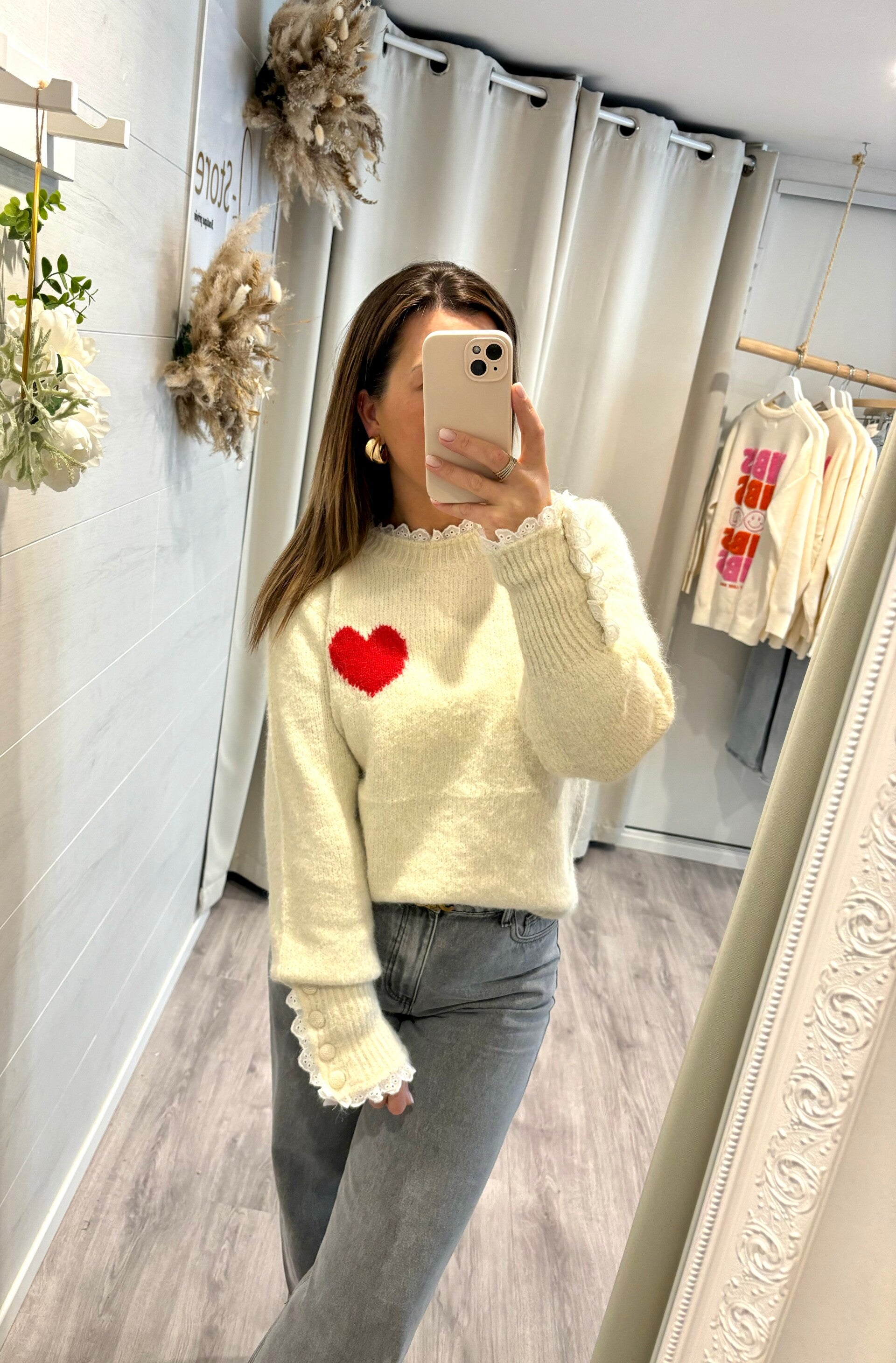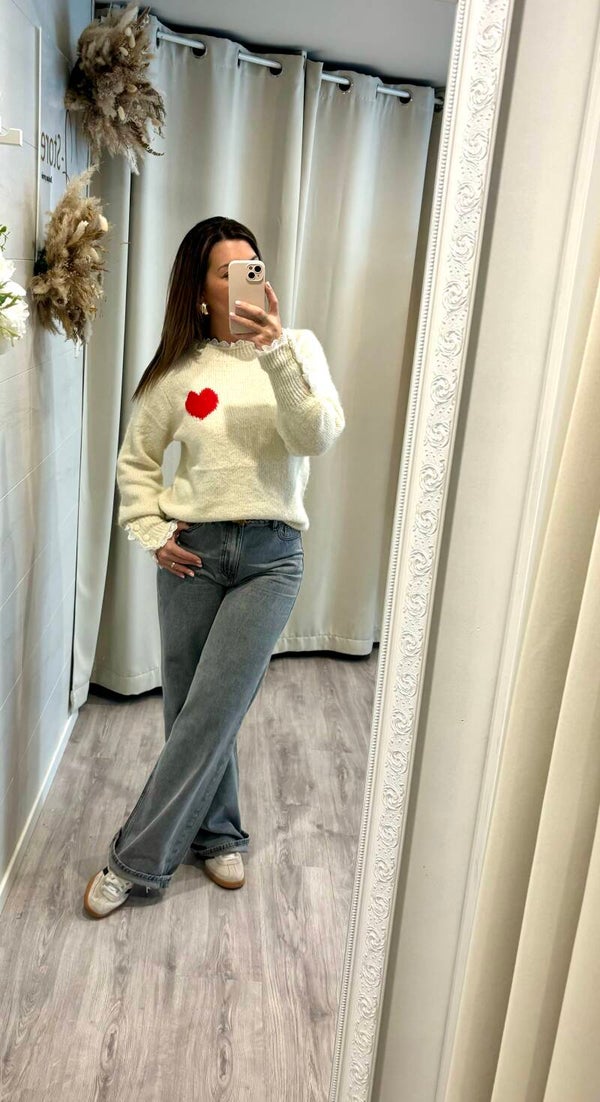 Pull romantique avec ses détails en dentelle.