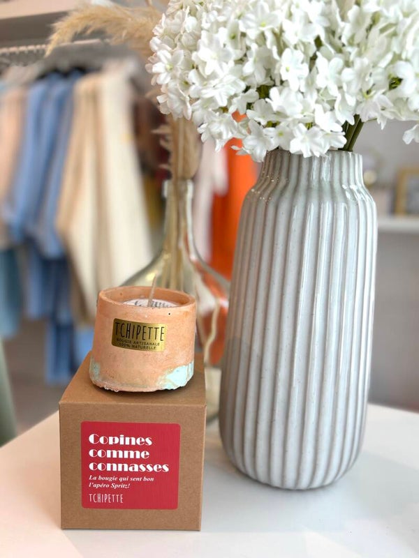 Bougie 100% naturelle de la créatrice Belge TCHIPETTE , en béton coloré qui se décline en plusieurs modèles . * Odeur: Spritz