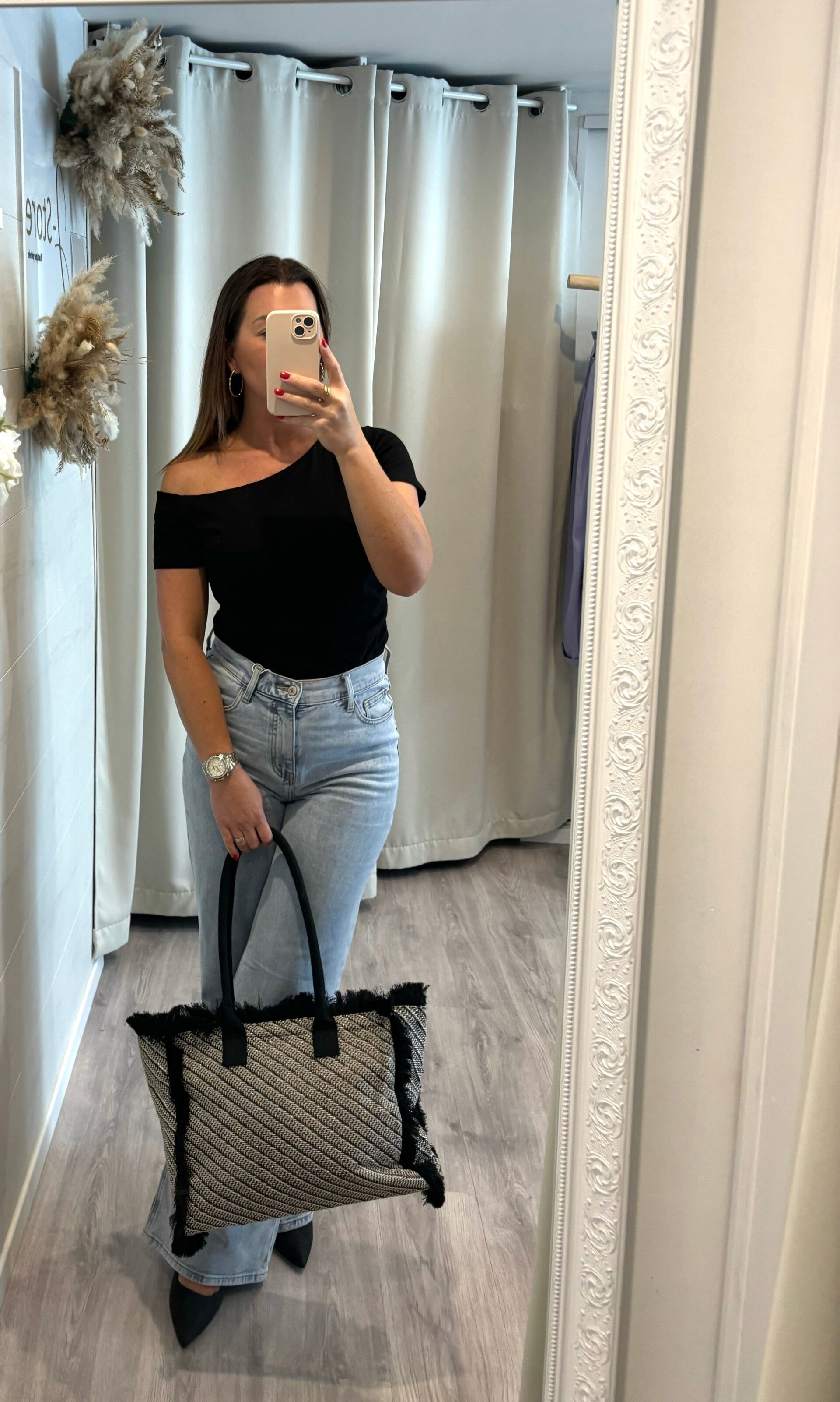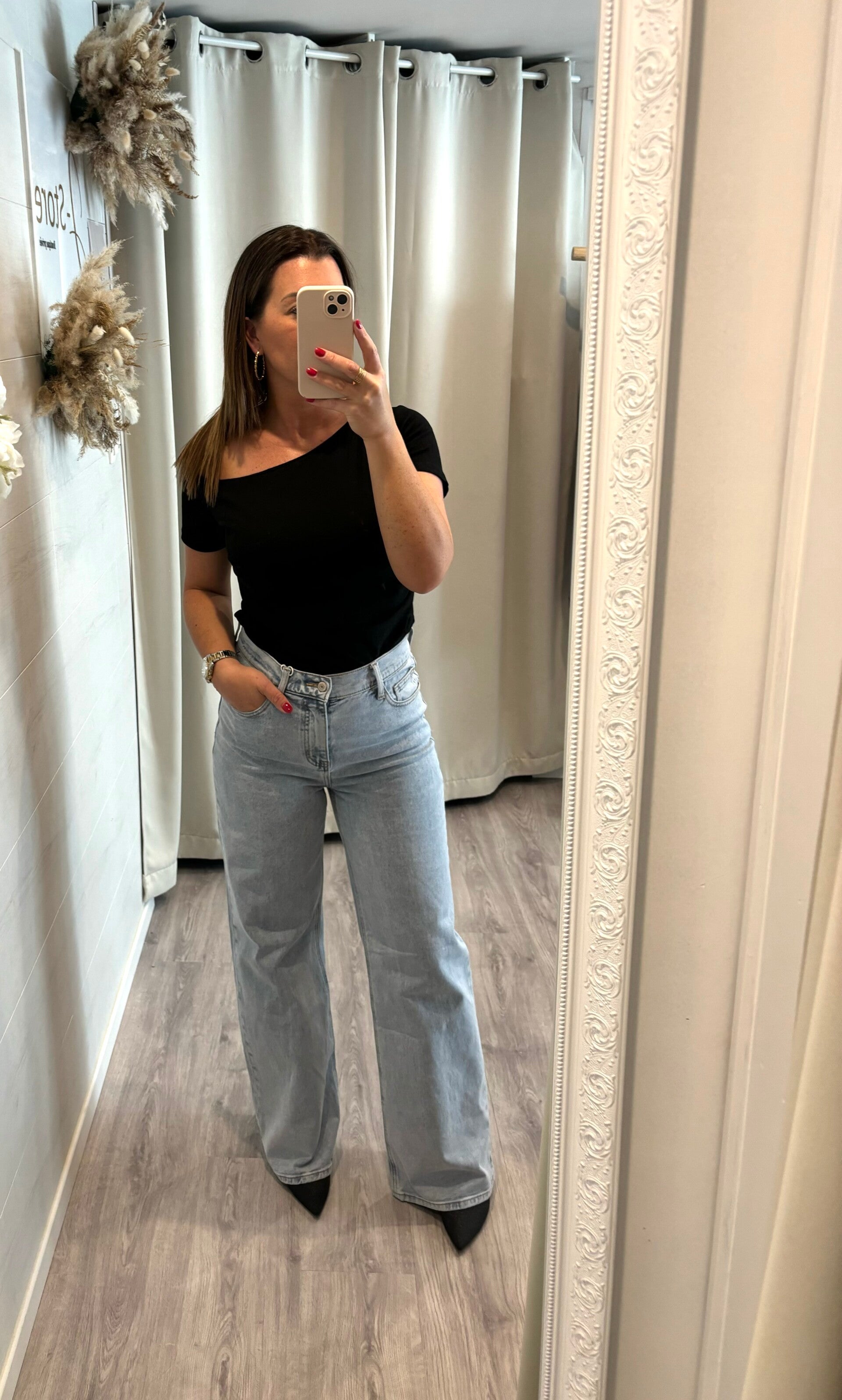 On adore cette blouse simple mais élégante avec ses manches courtes asymétriques.