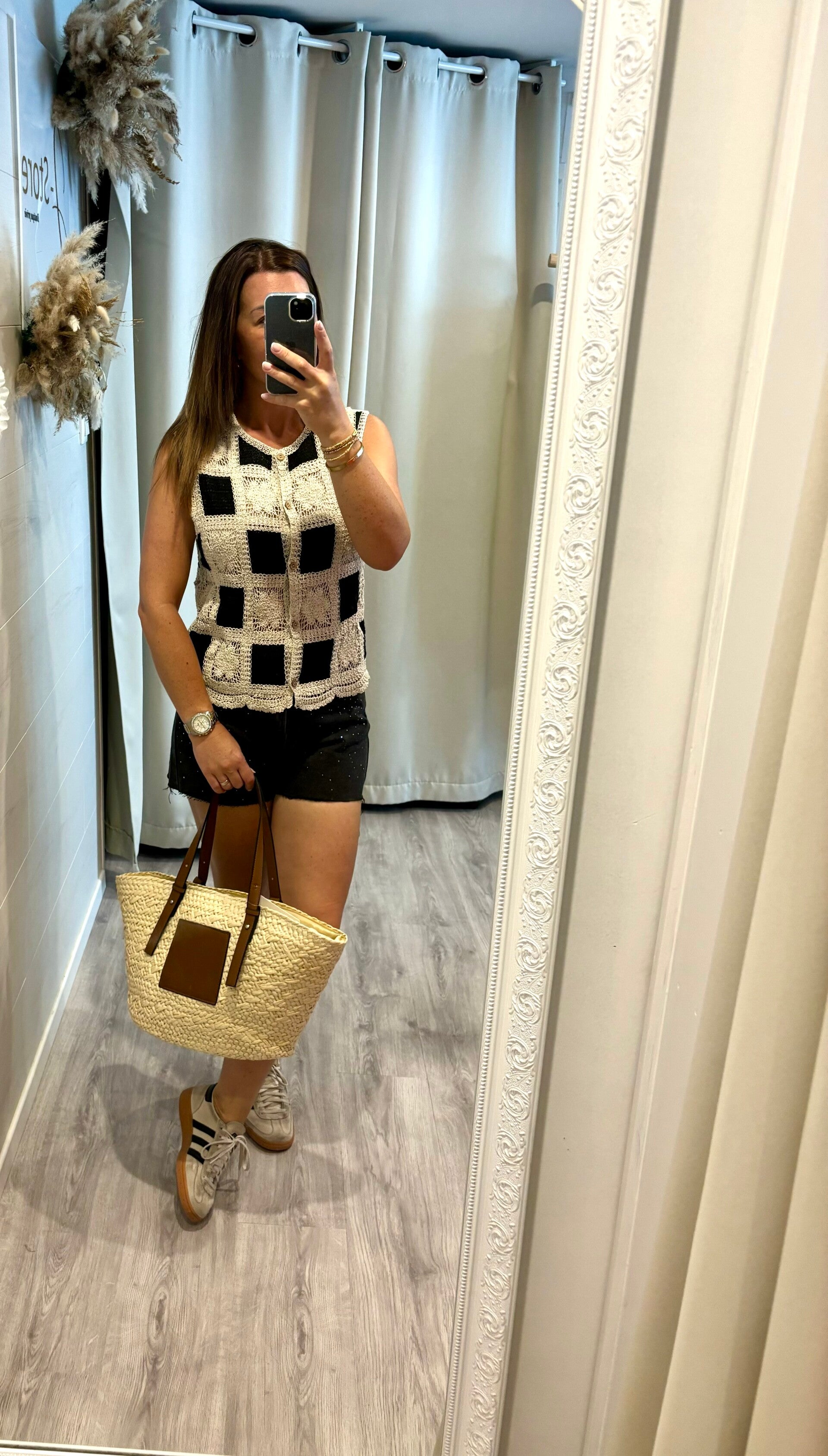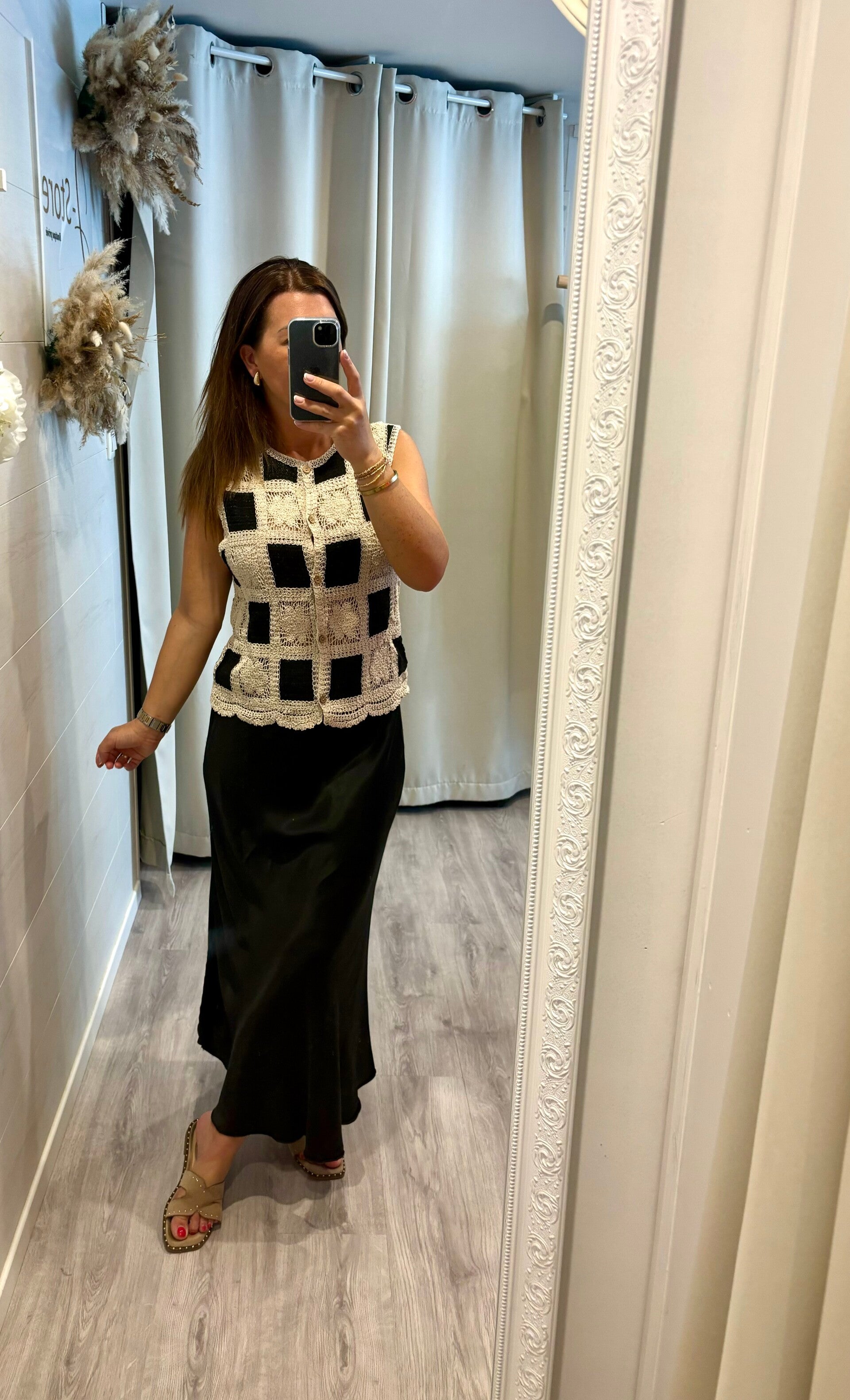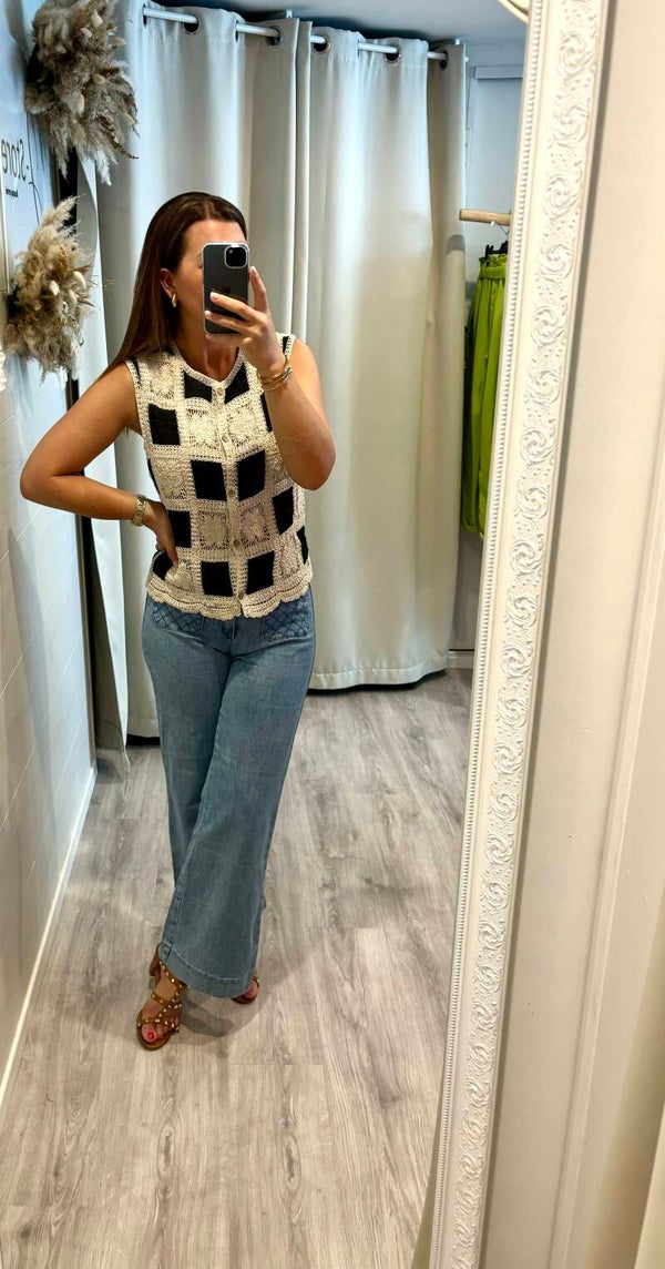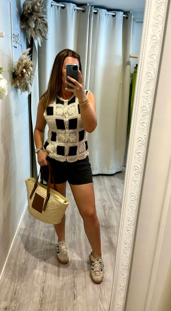 Découvrez notre blouse en crochet au charme unique : un contraste raffiné entre noir profond et écru délicat, pour un style à la fois bohème et chic.