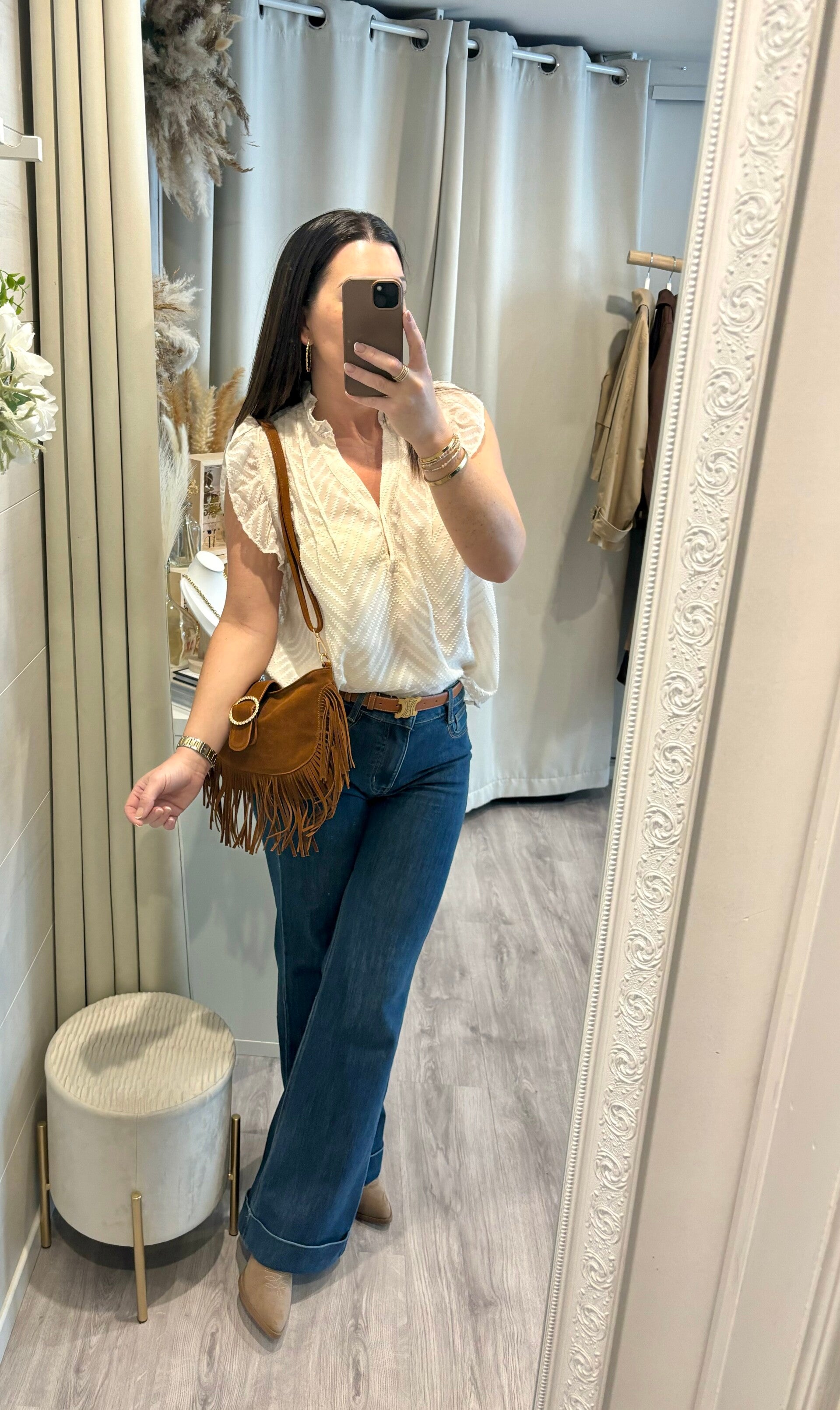 Portez-la rentrée dans un jean taille haute pour un look minimaliste, ou laissez-la flotter sur une jupe fluide pour une silhouette pleine de poésie.