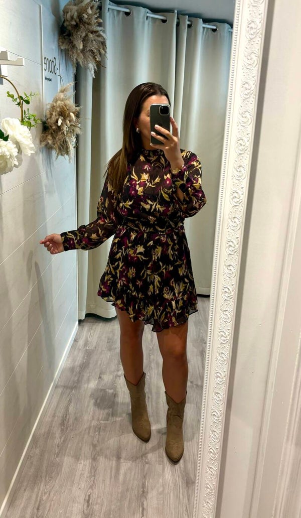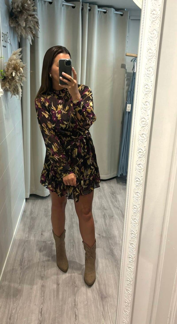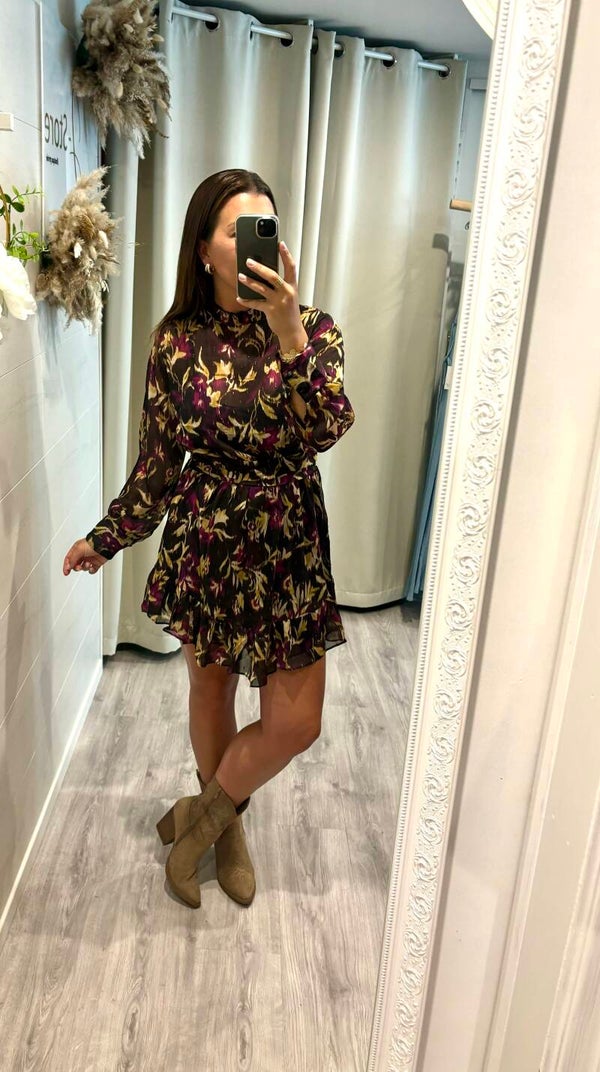 Laissez-vous séduire par la robe légère et fluide aux imprimés aux couleurs automnales.