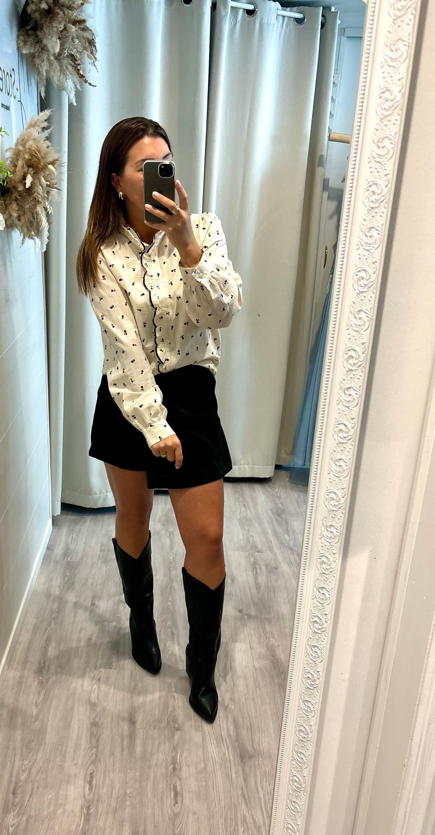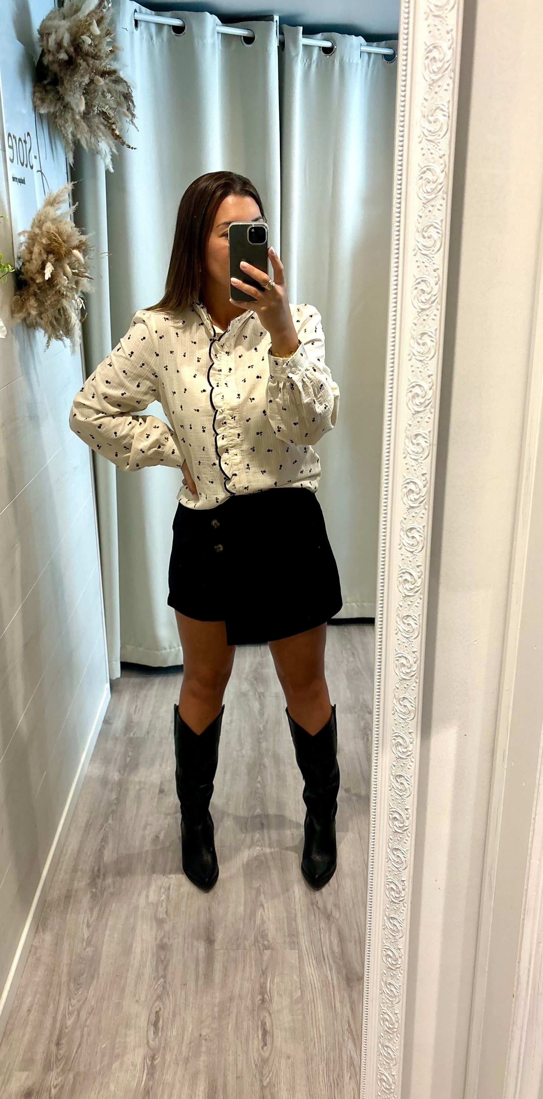 Craquez pour notre chemisier noir et blanc style écolière, une pièce qui mêle fraîcheur et élégance. Avec son contraste raffiné et ses détails soignés, il insuffle une touche de jeunesse tout en restant résolument tendance.