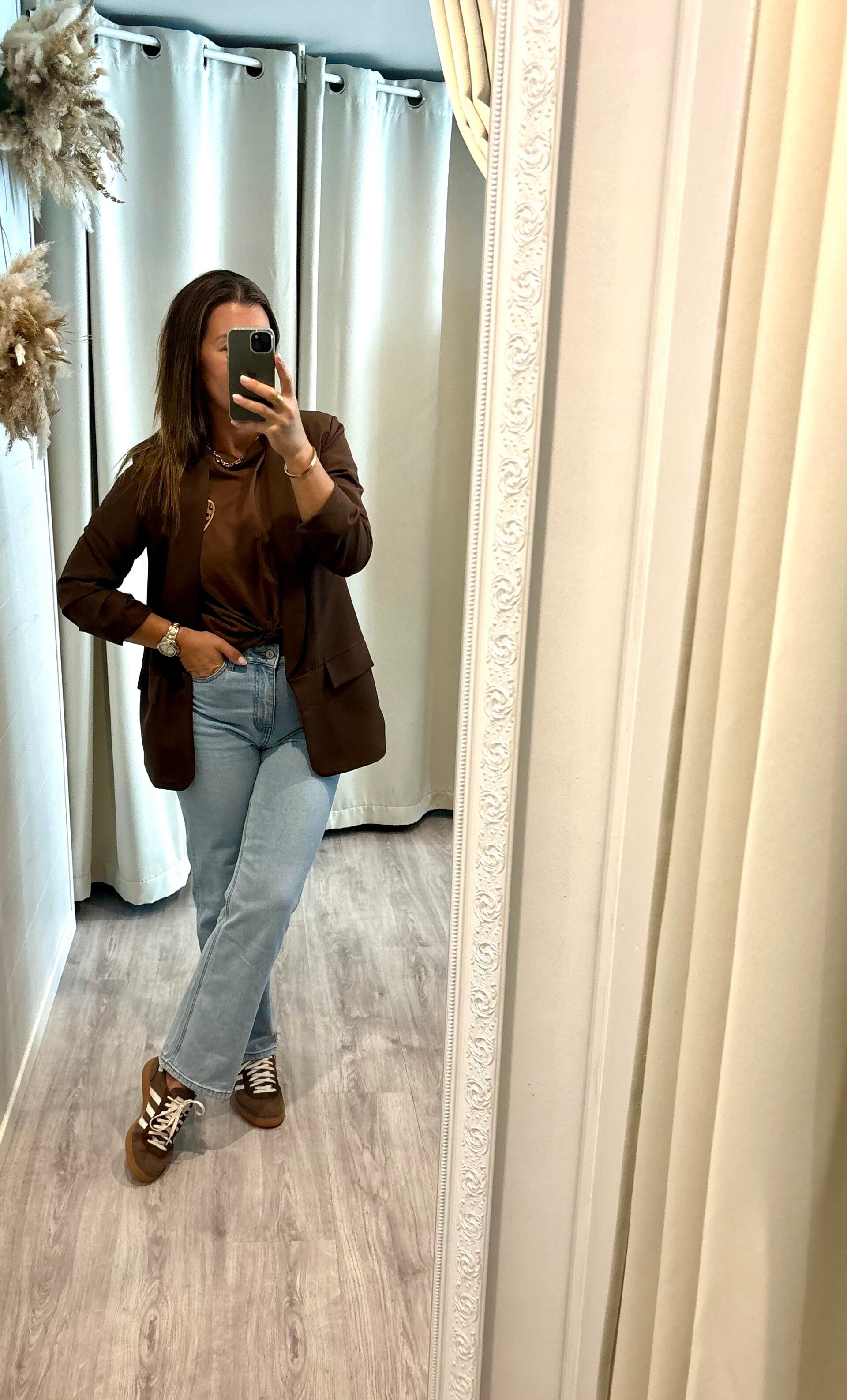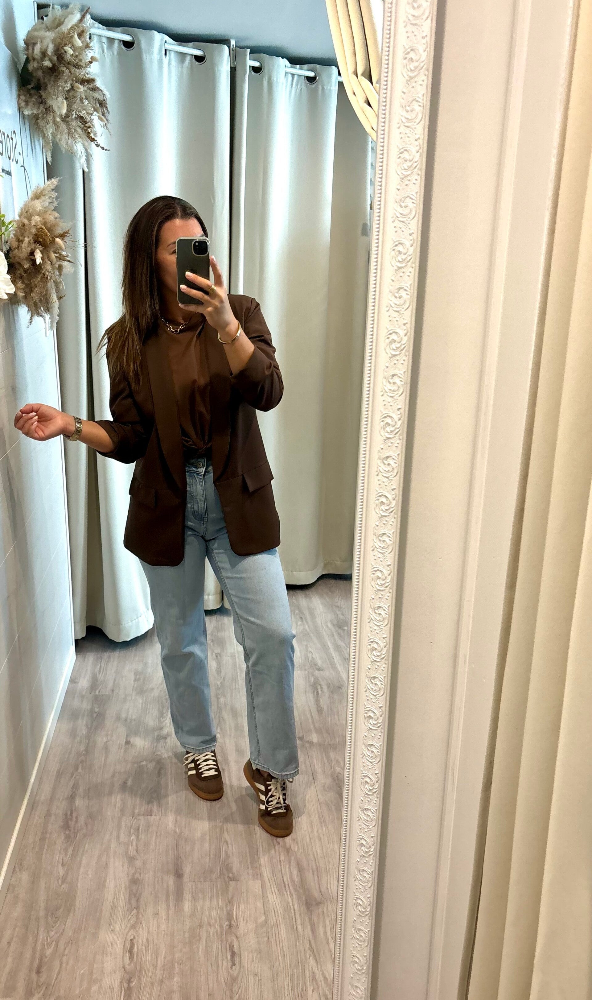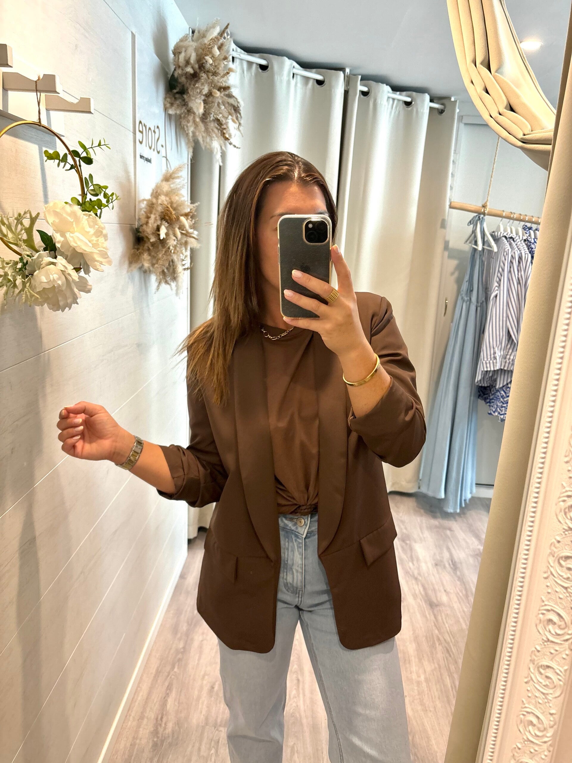 Élégance intemporelle, chaleur subtile : laissez-vous séduire par notre blazer couleur cacao, une pièce raffinée qui allie style et caractère.