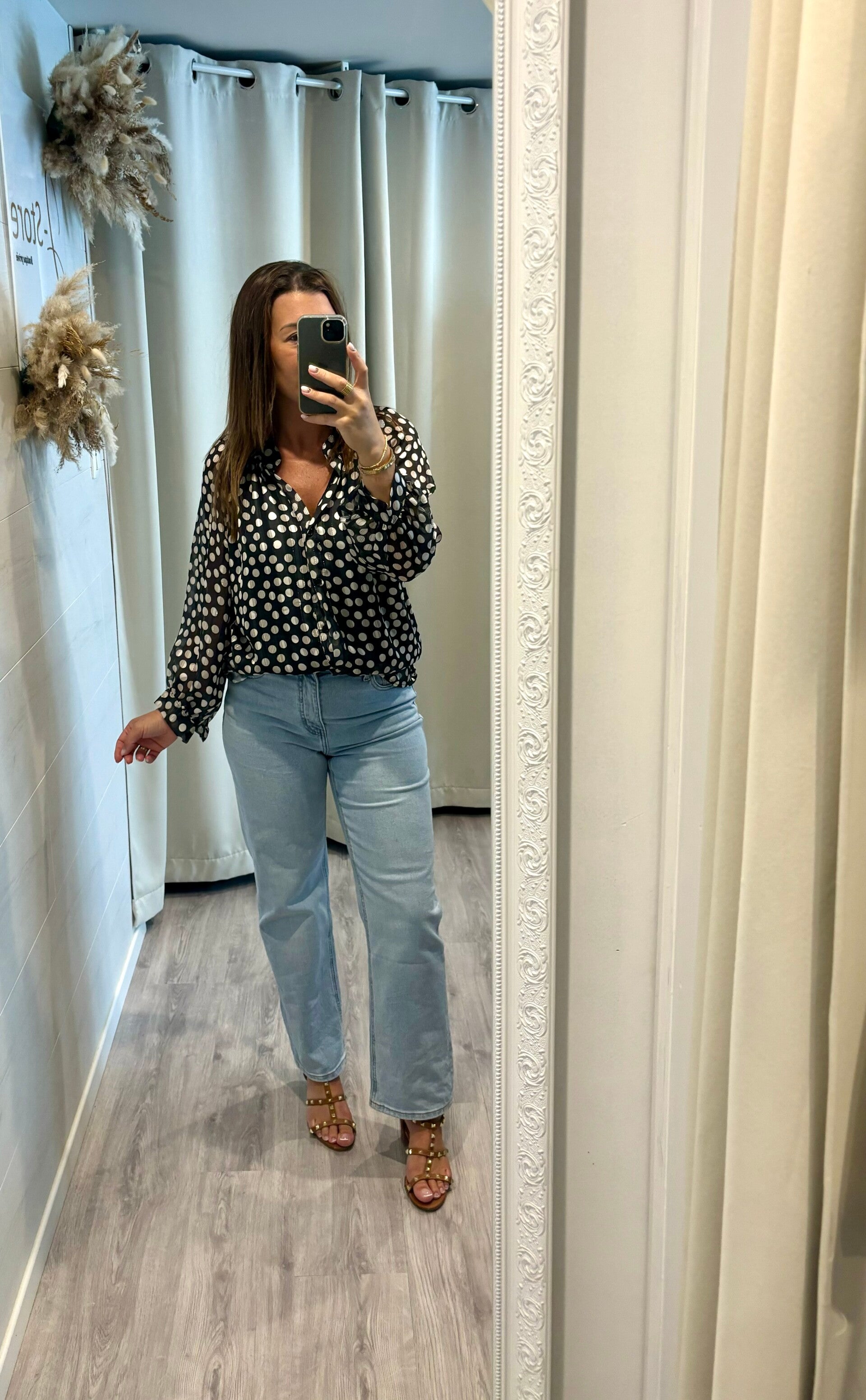 Découvrez notre blouse à pois fluide, le parfait équilibre entre confort et style. Sa matière légère caresse la peau tandis que son imprimé à pois apporte une touche intemporelle et chic à toutes vos tenues. Idéale pour le bureau, une sortie entre amis ou un rendez-vous, elle se porte facilement avec un jean, une jupe ou un pantalon élégant.