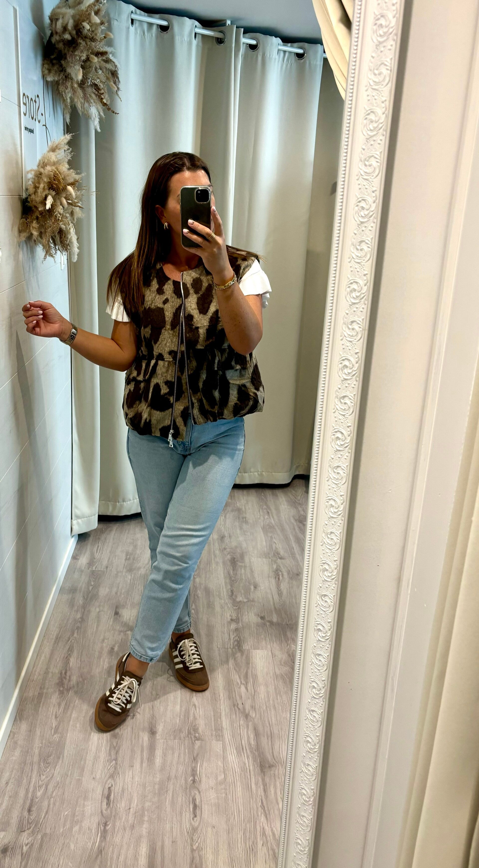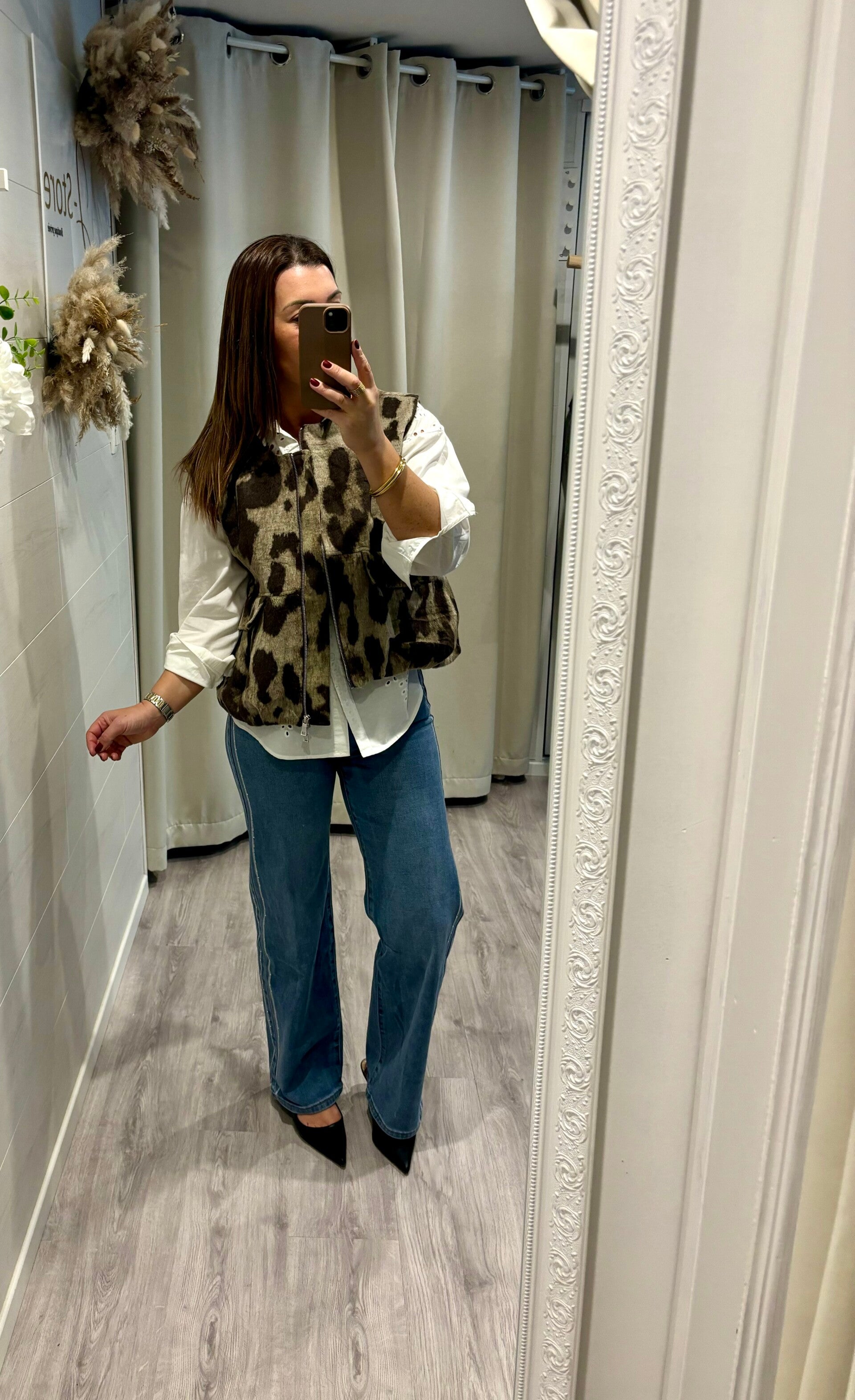 Avec notre gilet léopard, affirmez votre style en un clin d’œil. Doux, confortable et terriblement tendance, il apporte une touche audacieuse à vos looks du quotidien. À porter aussi bien sur un jean décontracté que sur une tenue chic pour une allure féline et moderne.
