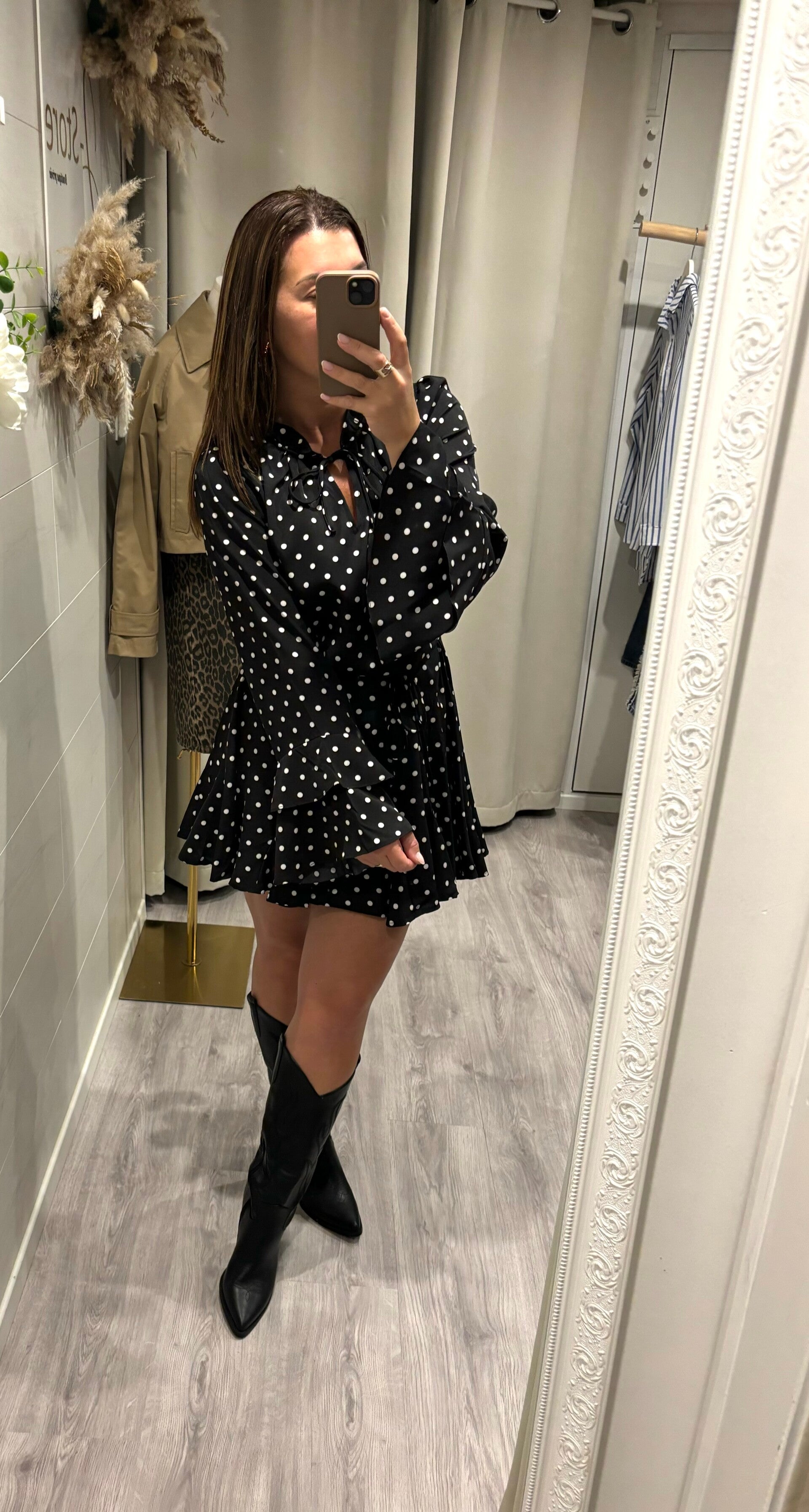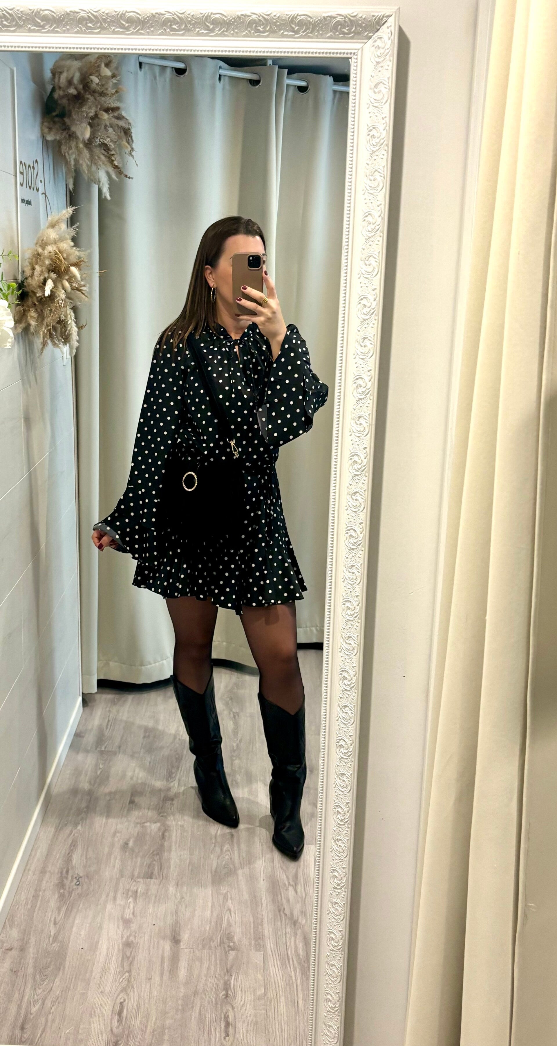 On craque totalement pour cette robe noire à petits pois, ultra féminine et pleine de pep’s !