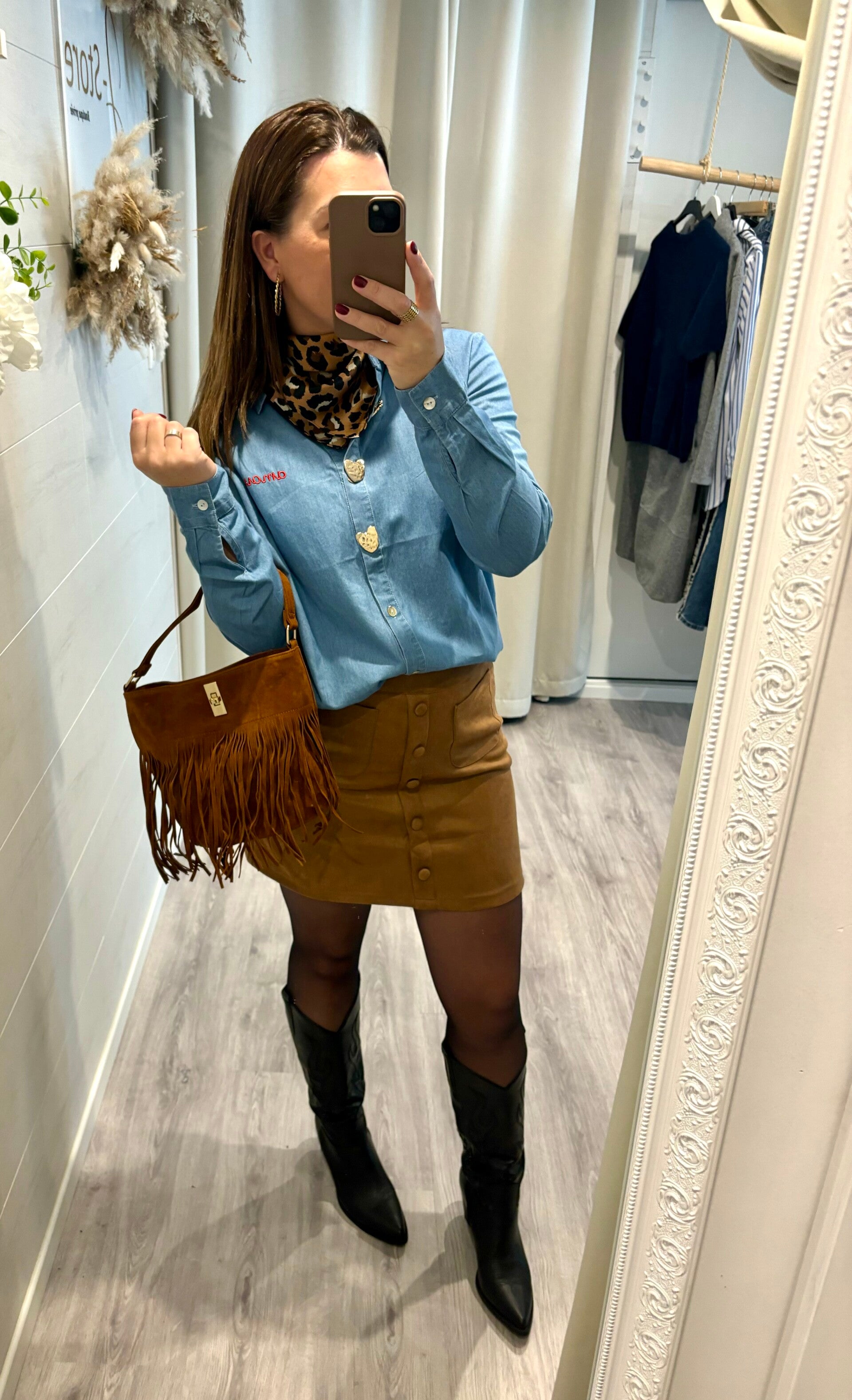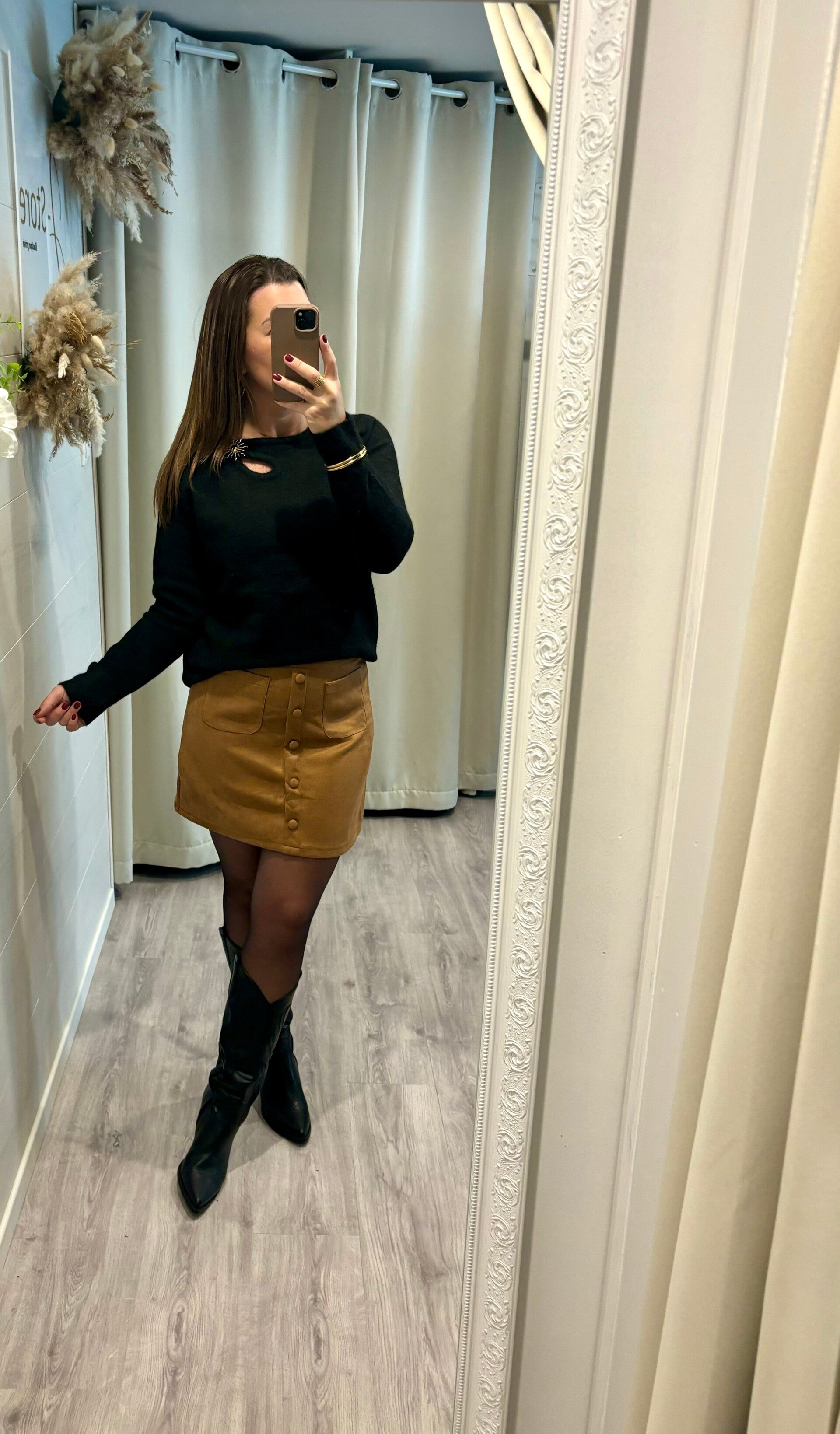 Craquez pour cette jupe courte en suédine camel, douce et élégante à souhait 🤎