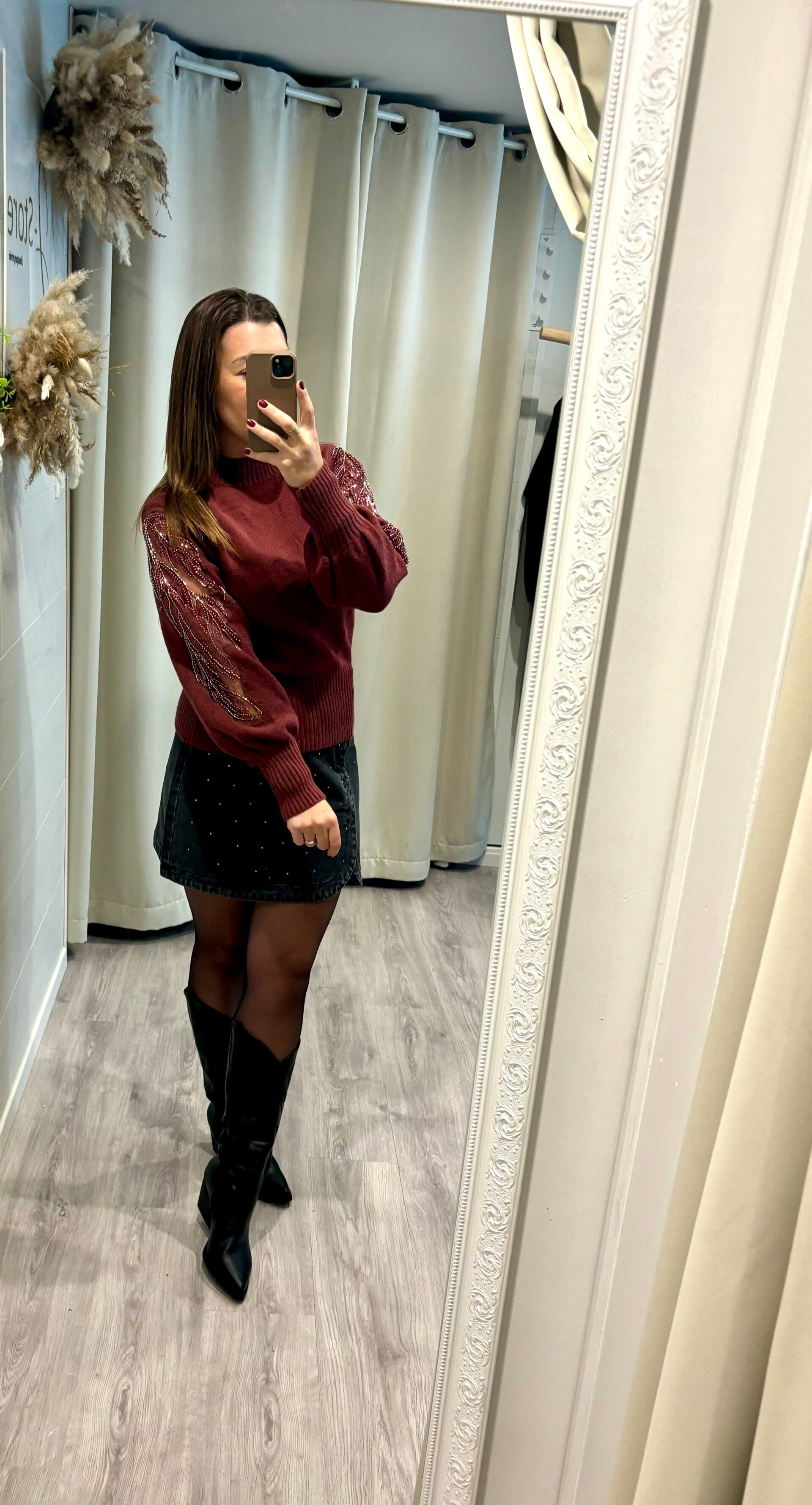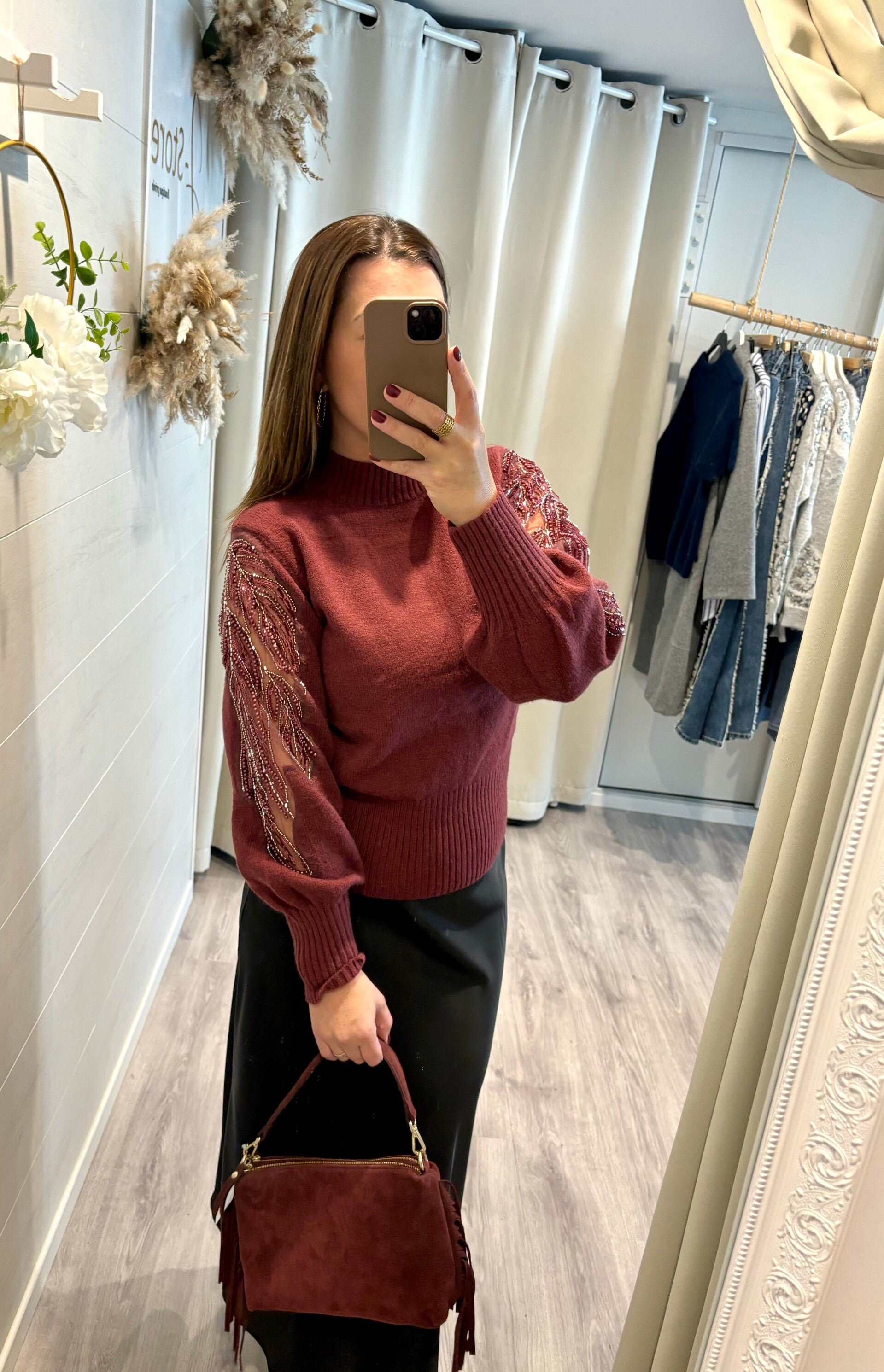 Laissez- vous séduire par ce pull bordeaux au charme irrésistible.