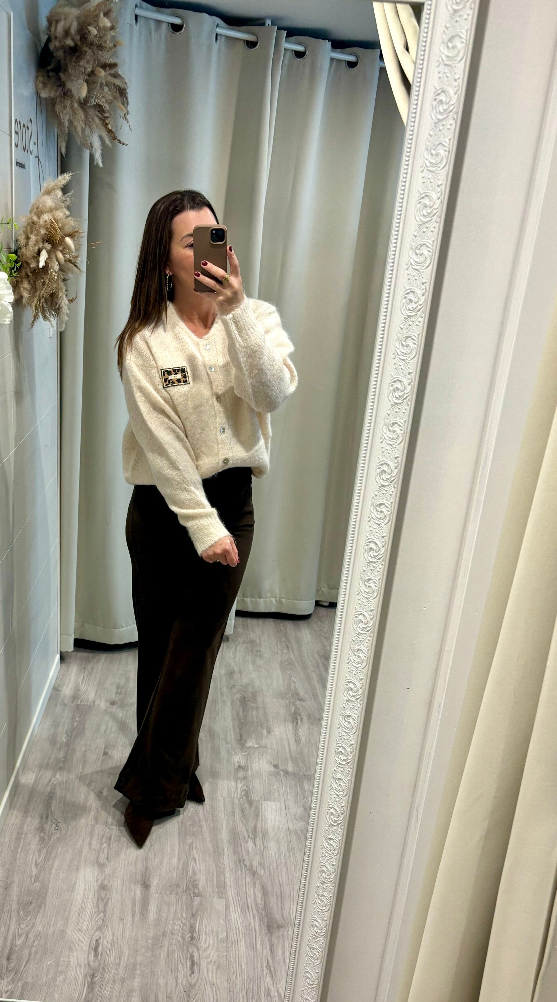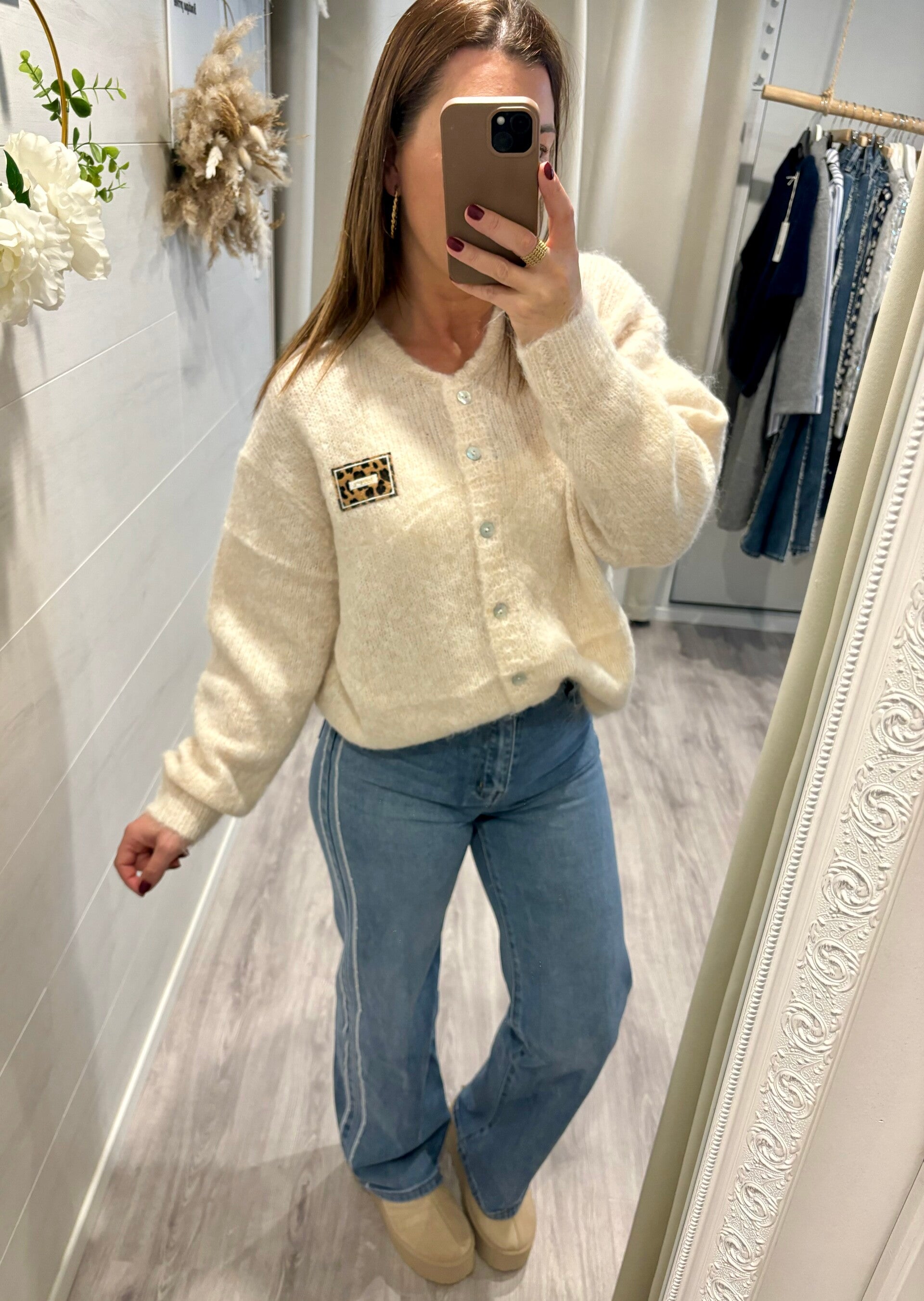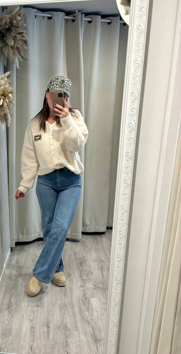 Ce gilet écru illumine chaque tenue d’une touche de raffinement.