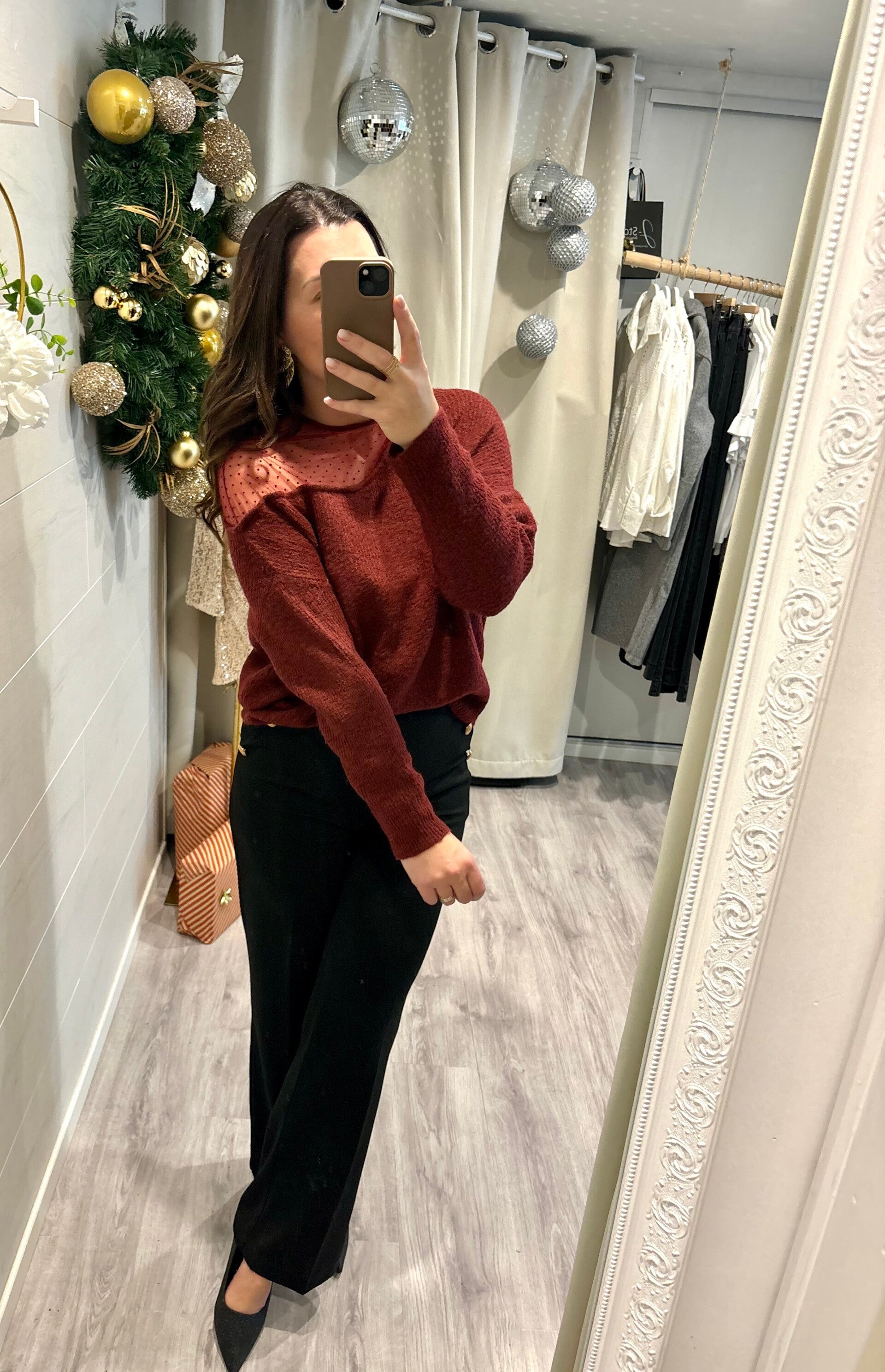 - détail : voilé imprimé petits pois sur l'épaule gauche