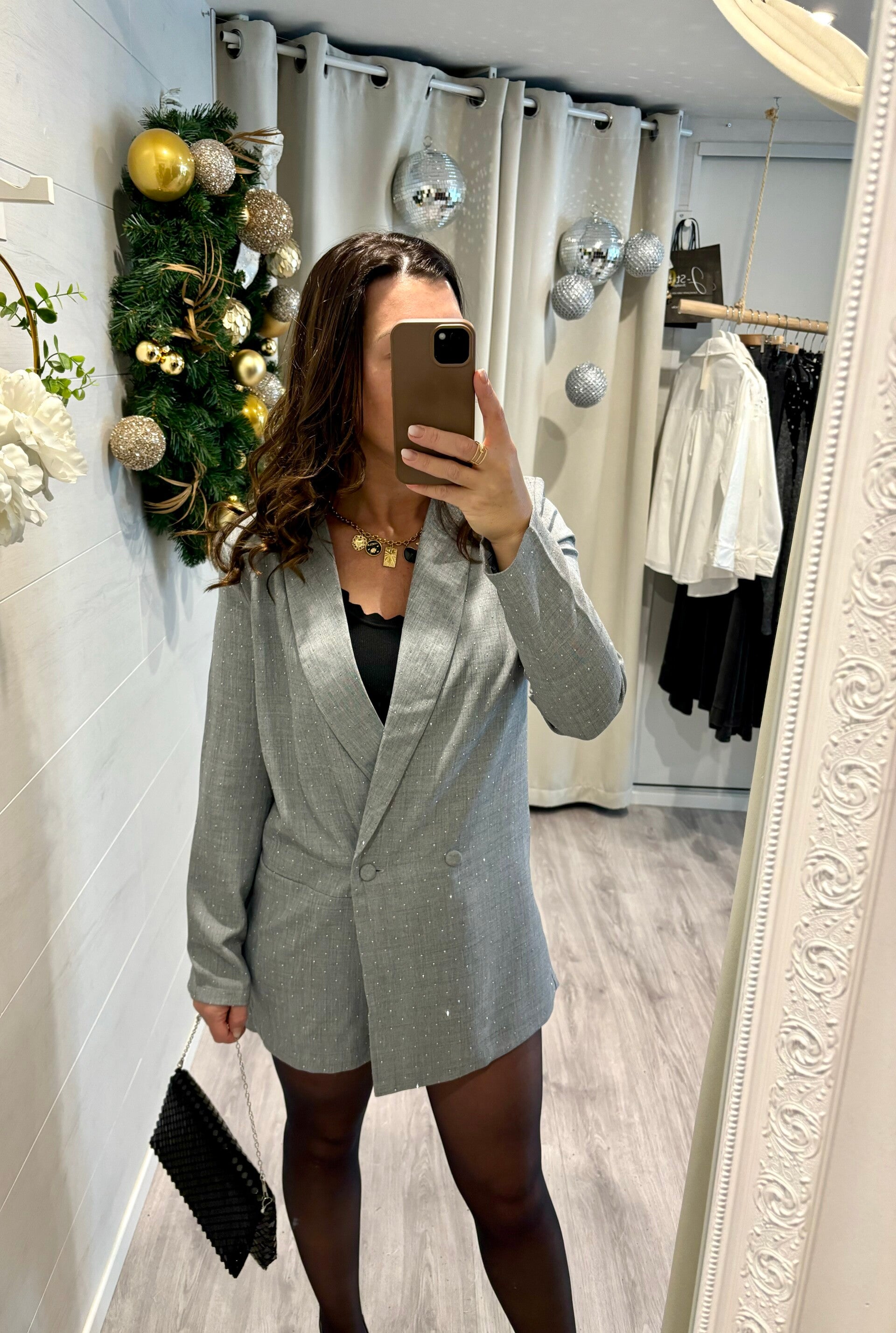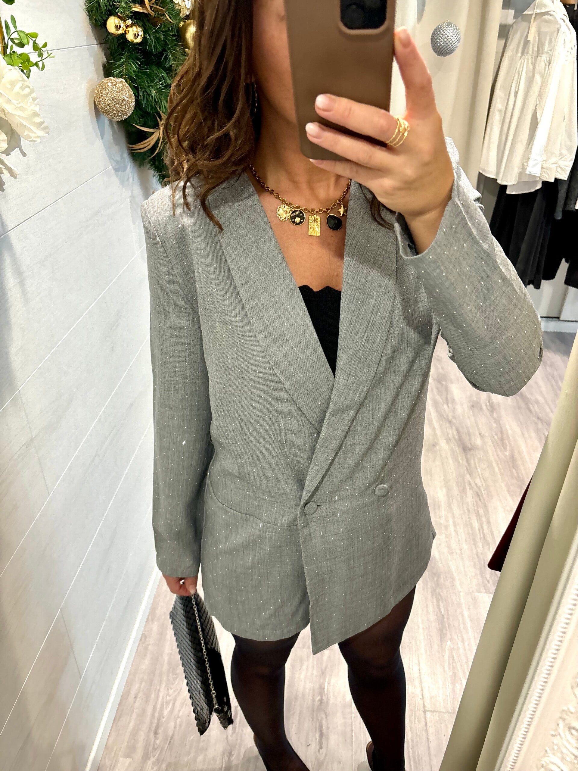 Avec sa coupe tailleur élégante et ses touches discrètes de brillance, cette pièce iconique réunit style, audace et sophistication en un seul geste.