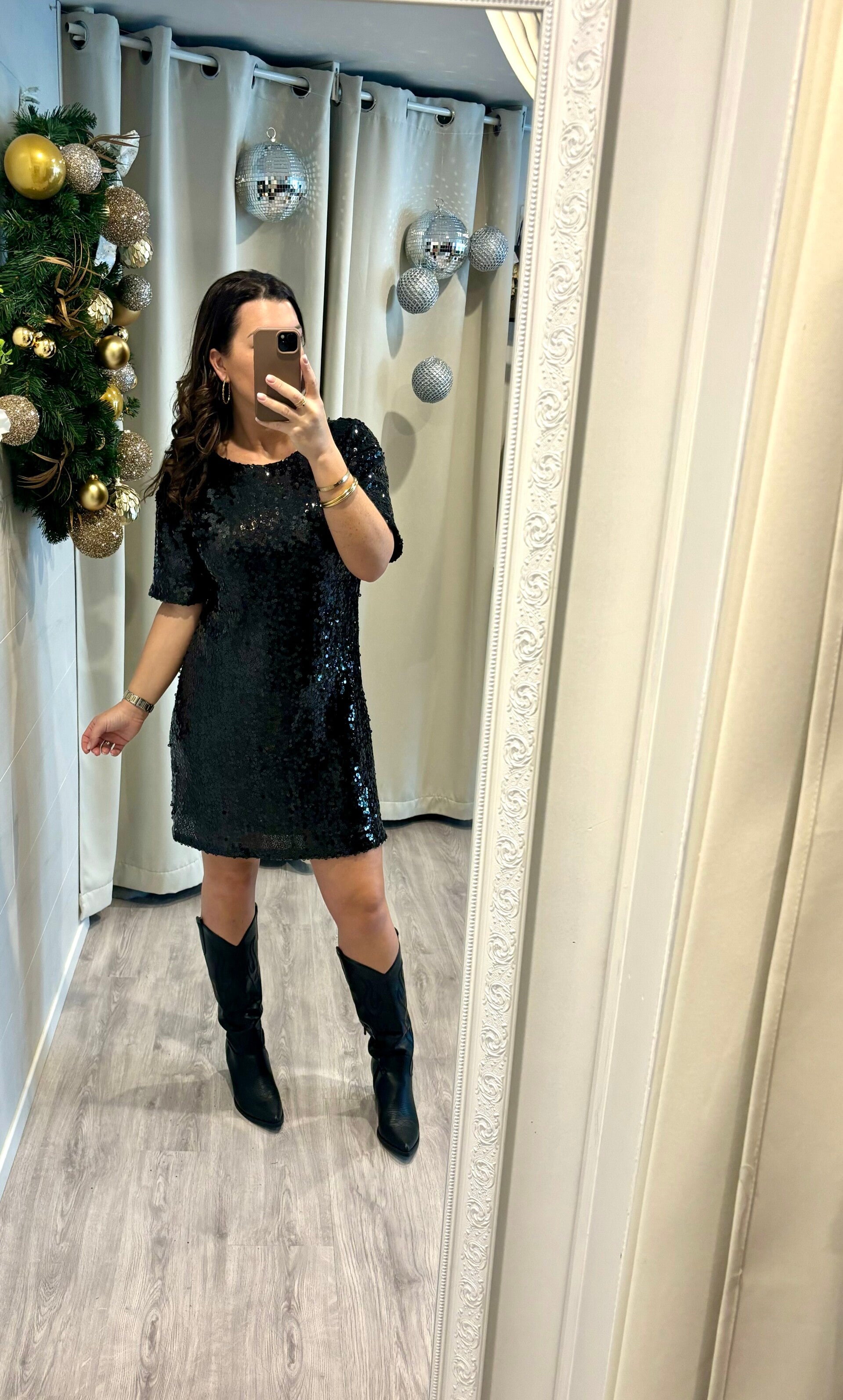 ✨ L’indispensable des fêtes est arrivée. Avec son tissu pailleté qui capte chaque lumière et sa coupe moderne ultra flatteuse, cette robe transforme instantanément votre look en tenue de soirée irrésistible. Prête à briller ?