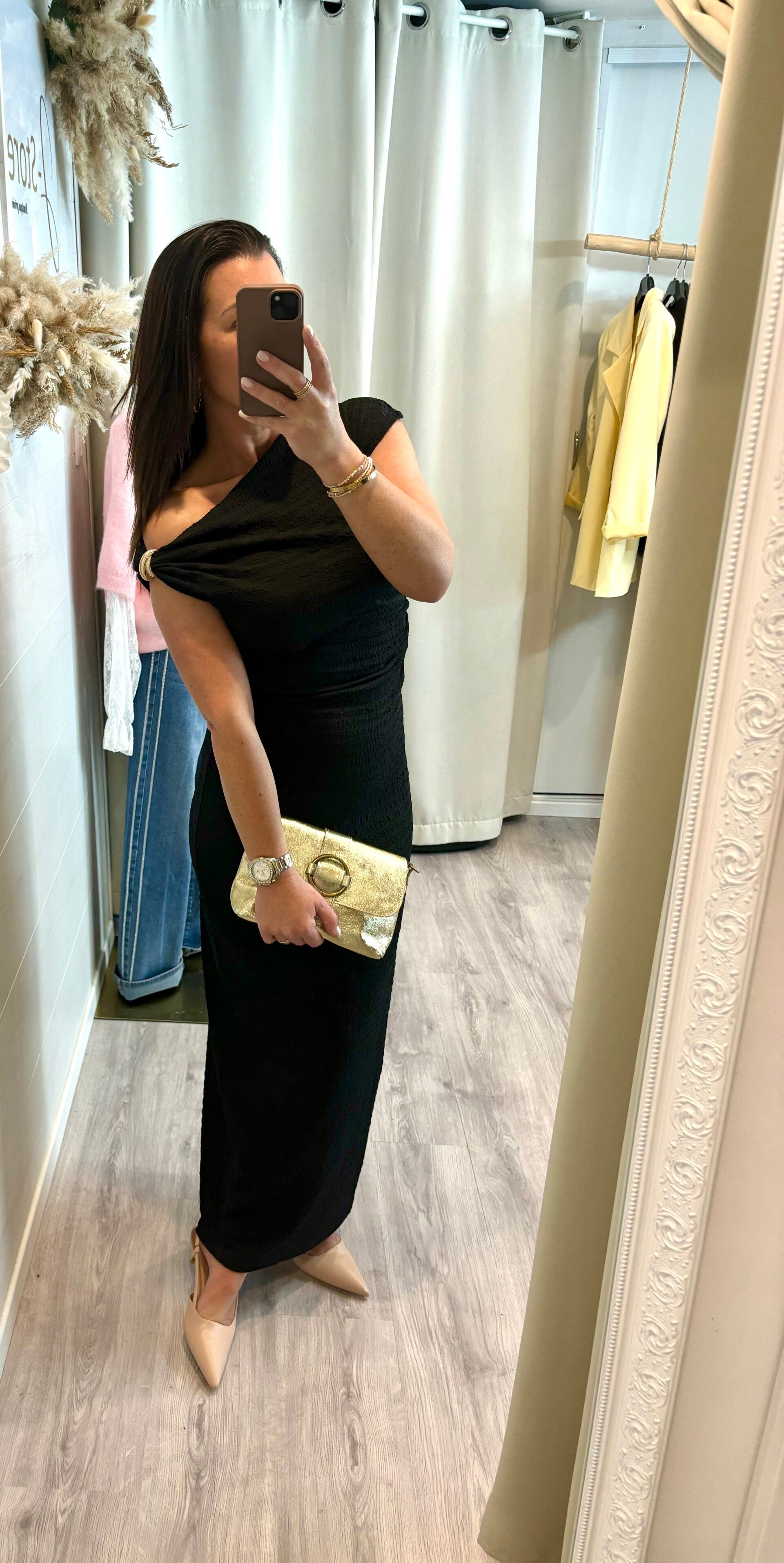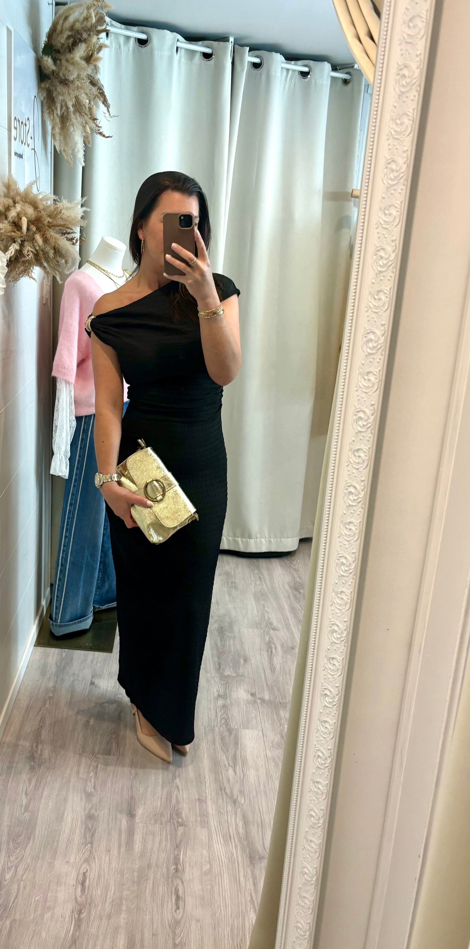 Parfaite pour vos soirées, événements ou dîners raffinés, elle se porte aussi facilement avec des bijoux dorés que des talons scintillants pour un look irrésistiblement glamour.