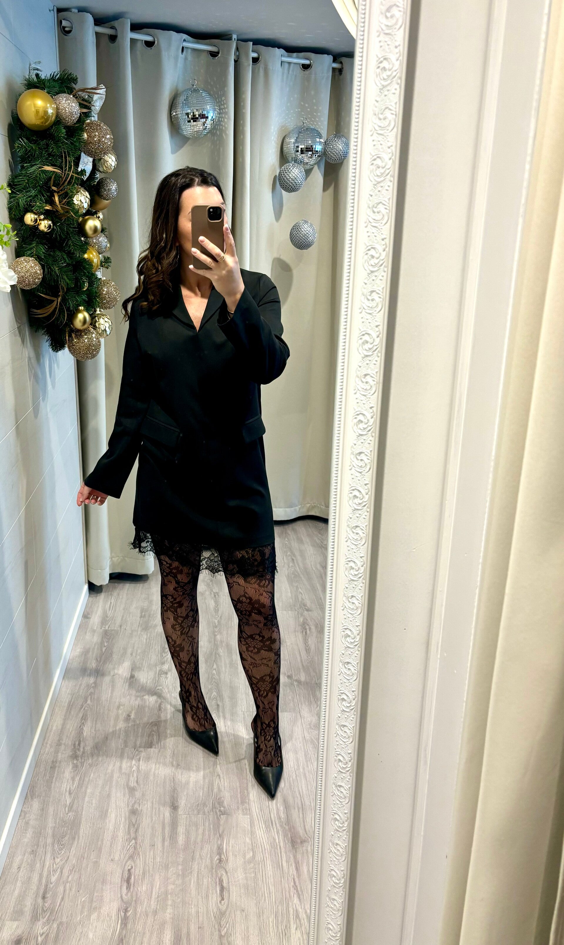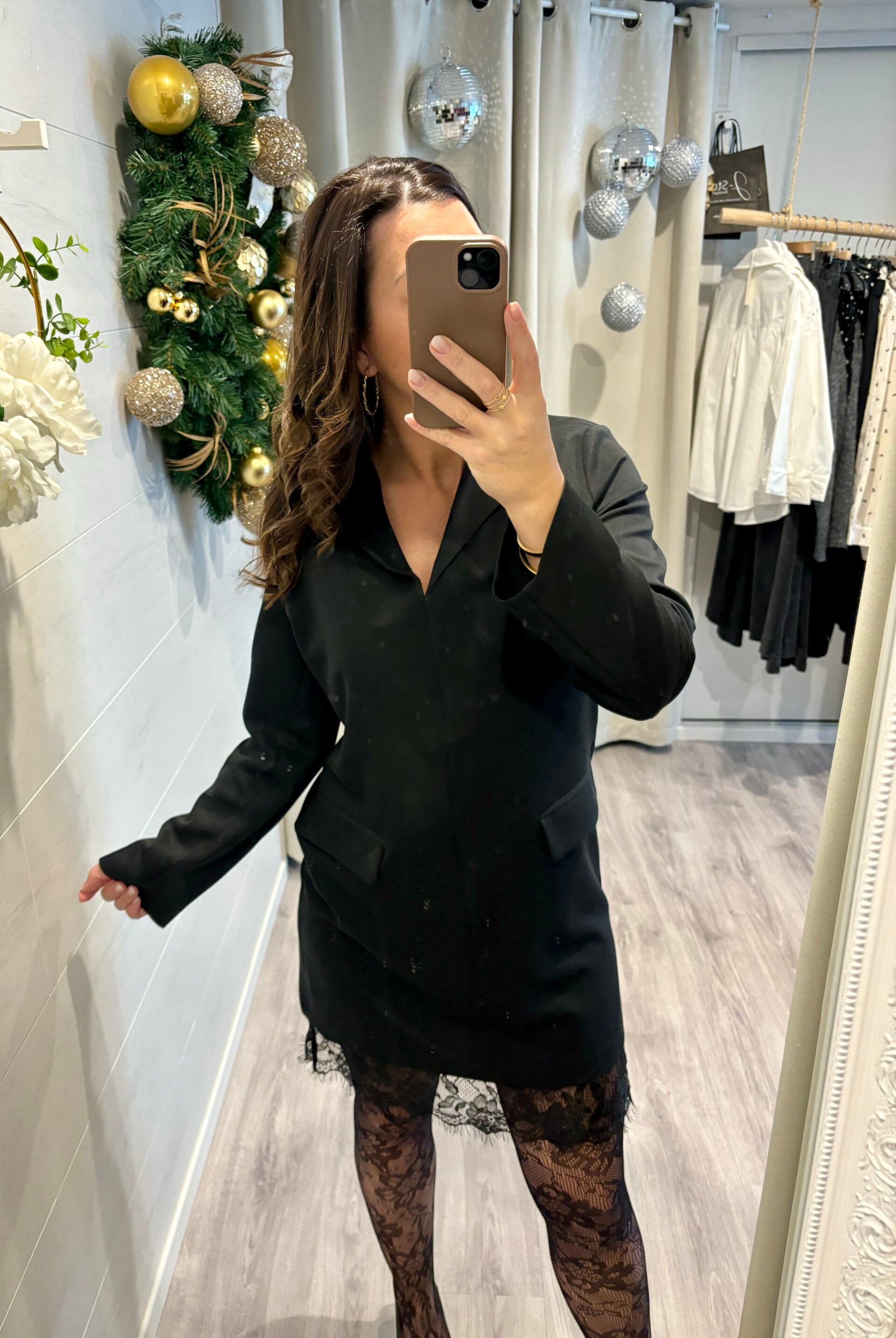 Laissez-vous charmer par notre robe noire classique délicatement bordée de dentelle, symbole absolu de féminité et de sophistication. Son design épuré rencontre la finesse de la dentelle pour offrir une allure à la fois intemporelle et subtilement séduisante.