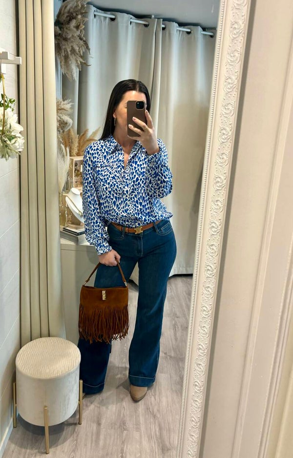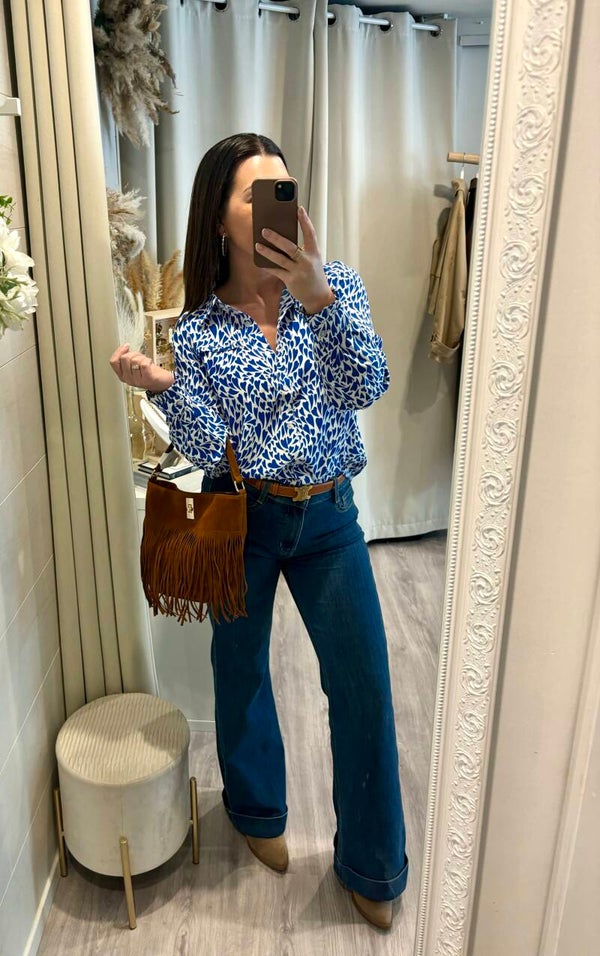 Avec son imprimé bleu intense sur fond blanc, cette chemise apporte une touche de fraîcheur et de modernité à toutes vos tenues. Sa coupe flatteuse et son tissu agréable à porter en font une pièce aussi confortable que stylée.