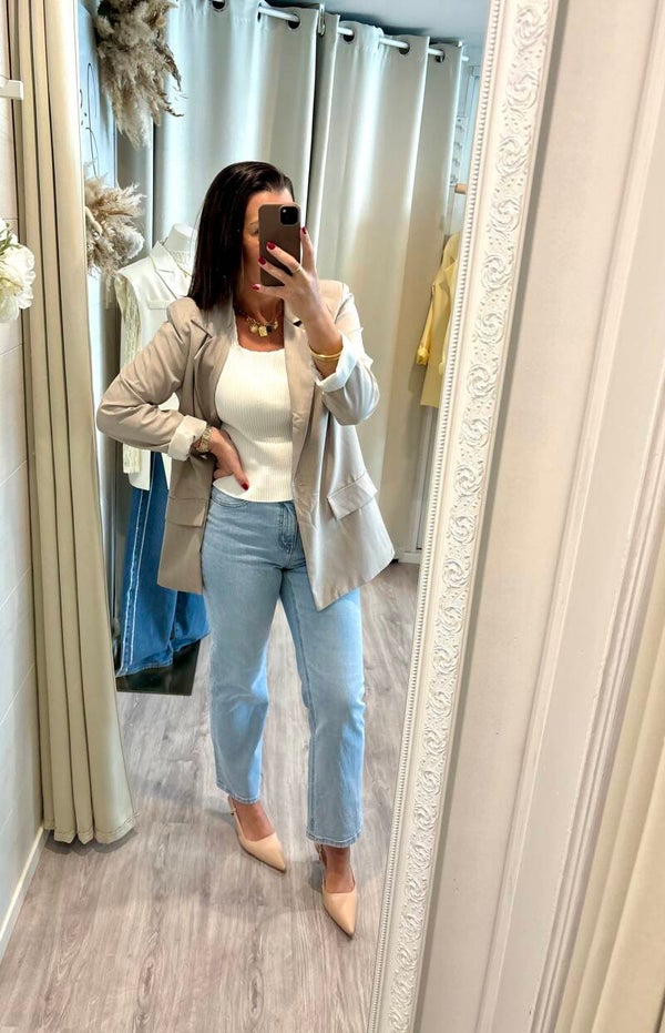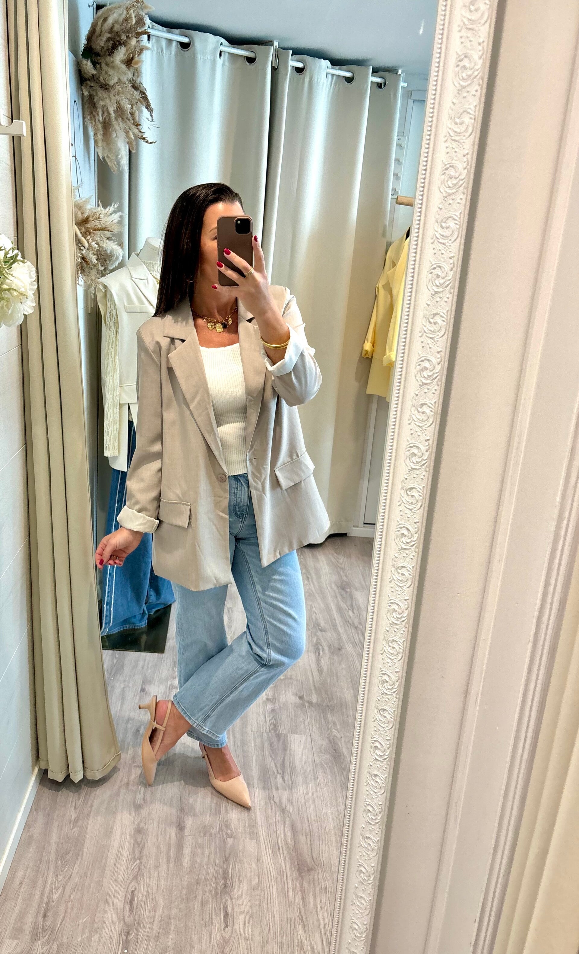 Craquez pour cette veste intemporelle, la pièce parfaite pour sublimer toutes vos tenues. Avec sa coupe fluide et structurée à la fois, elle apporte une touche chic et moderne, que ce soit avec un jean casual ou une tenue plus habillée.
